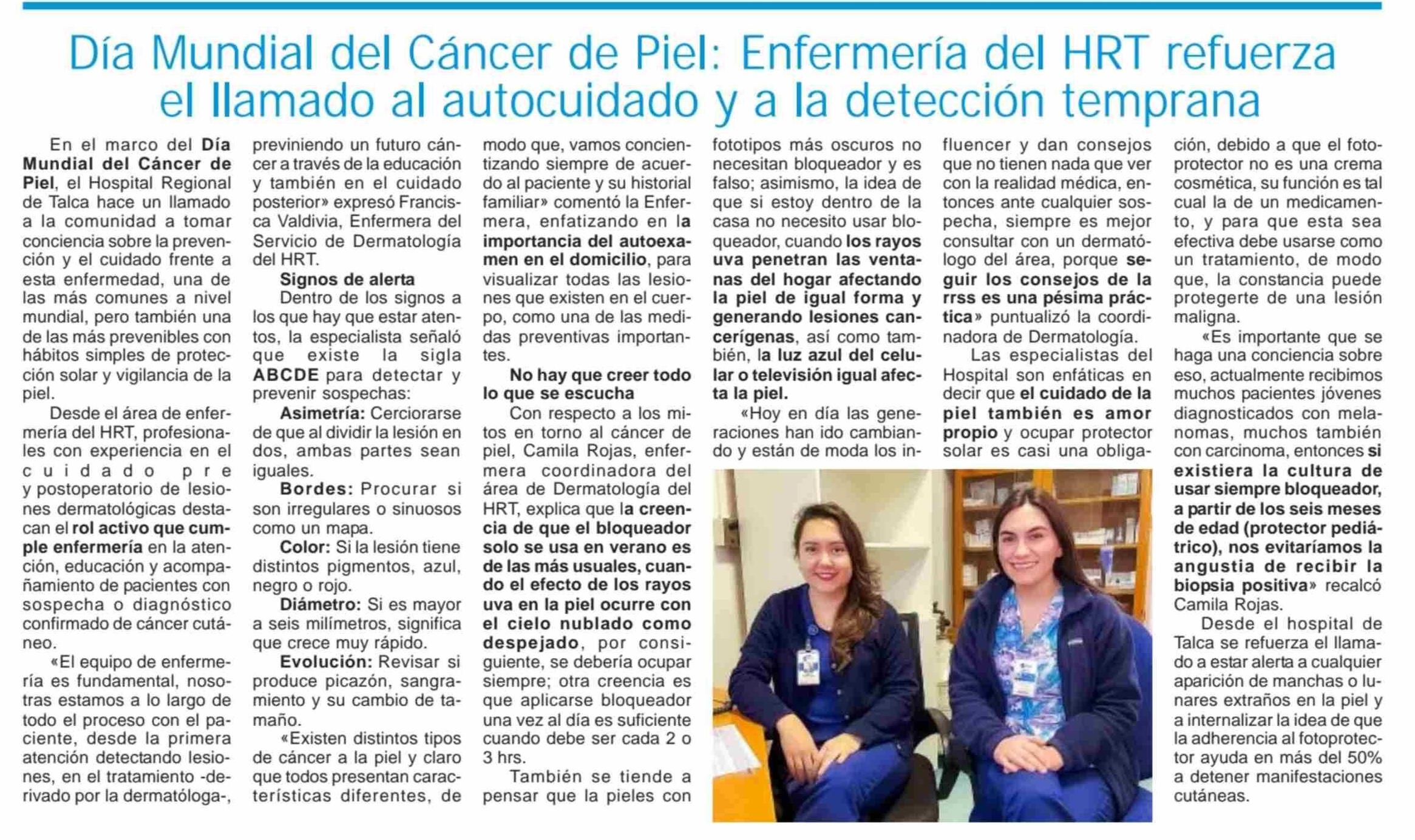 Día Mundial del Cáncer de Piel: Enfermería del HRT refuerza el llamado al autocuidado y a la detección temprana