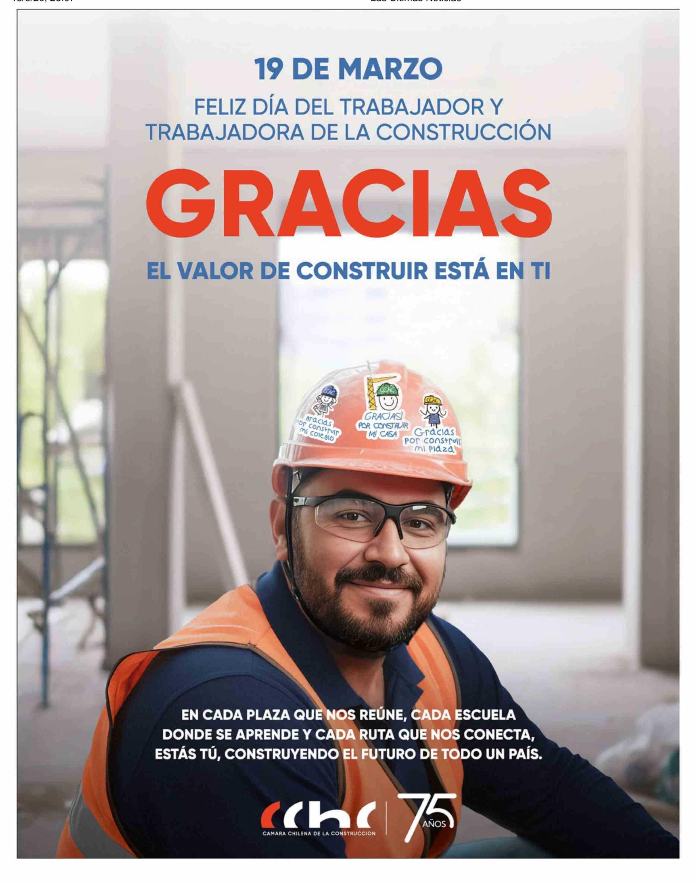 Aviso Publicitario: 19 DE MARZO FELIZ DÍA DEL TRABAJADOR Y TRABAJADORA DE LA CONSTRUCCIÓN