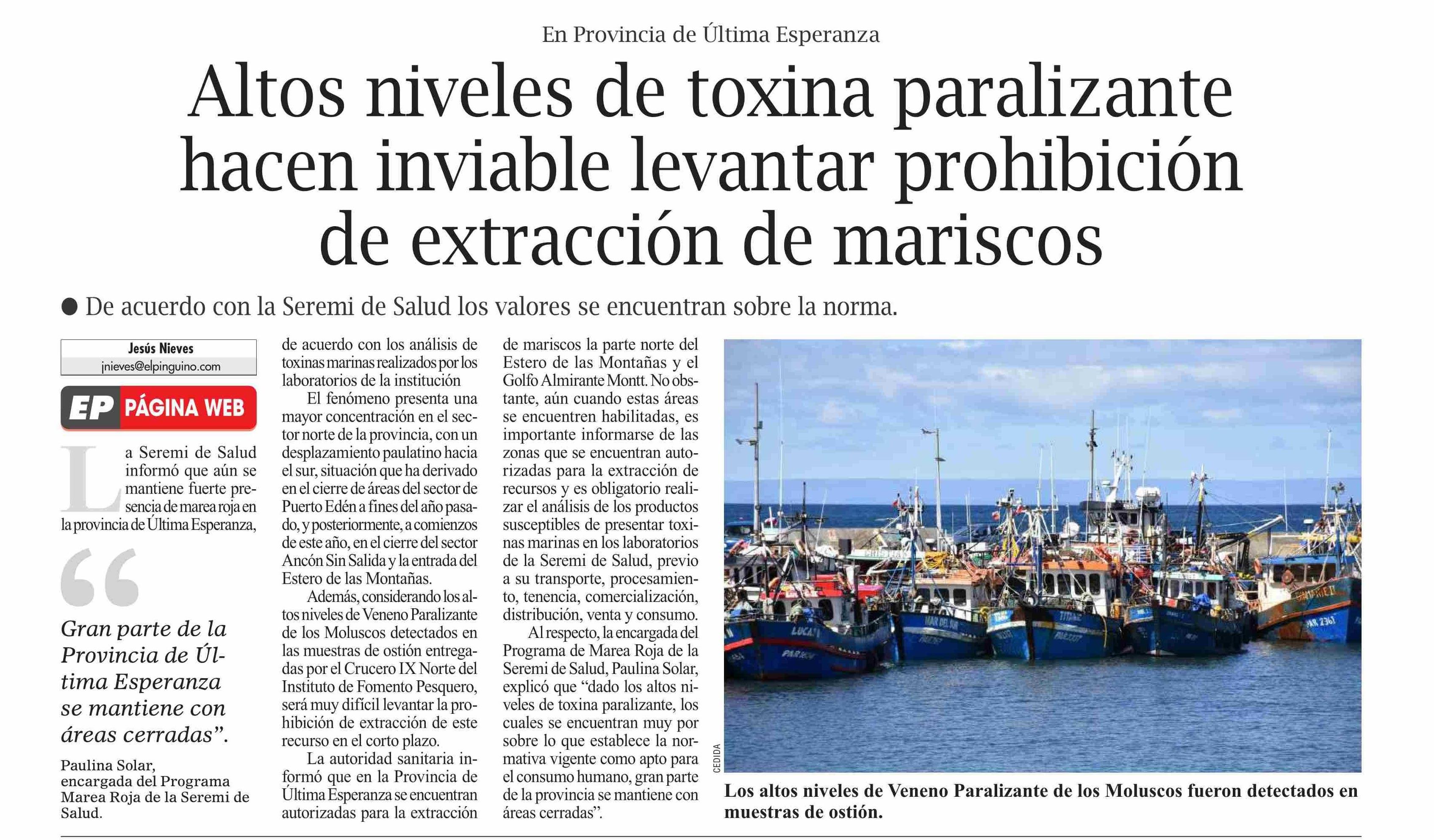 Altos niveles de toxina paralizante hacen inviable levantar prohibición de extracción de mariscos