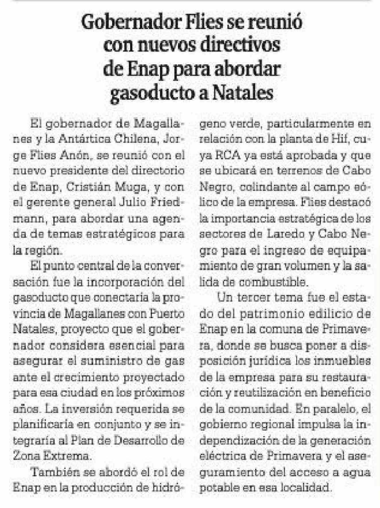 Gobernador Flies se reunió con nuevos directivos de Enap para abordar gasoducto a Natales