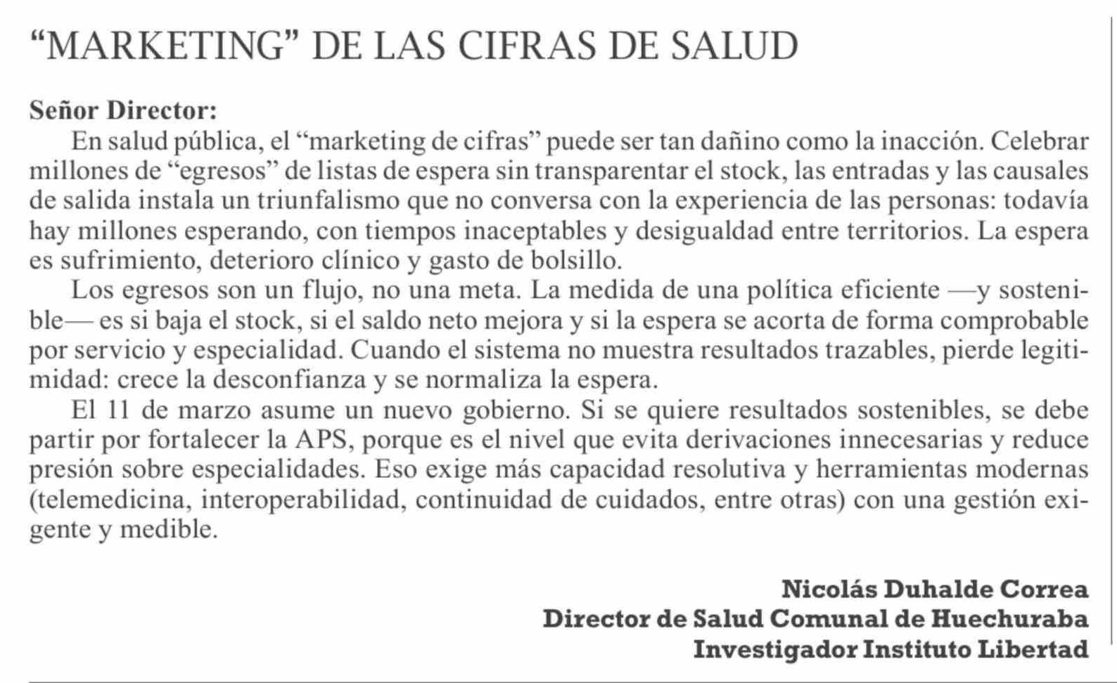 Cartas: "MARKETING" DE LAS CIFRAS DE SALUD