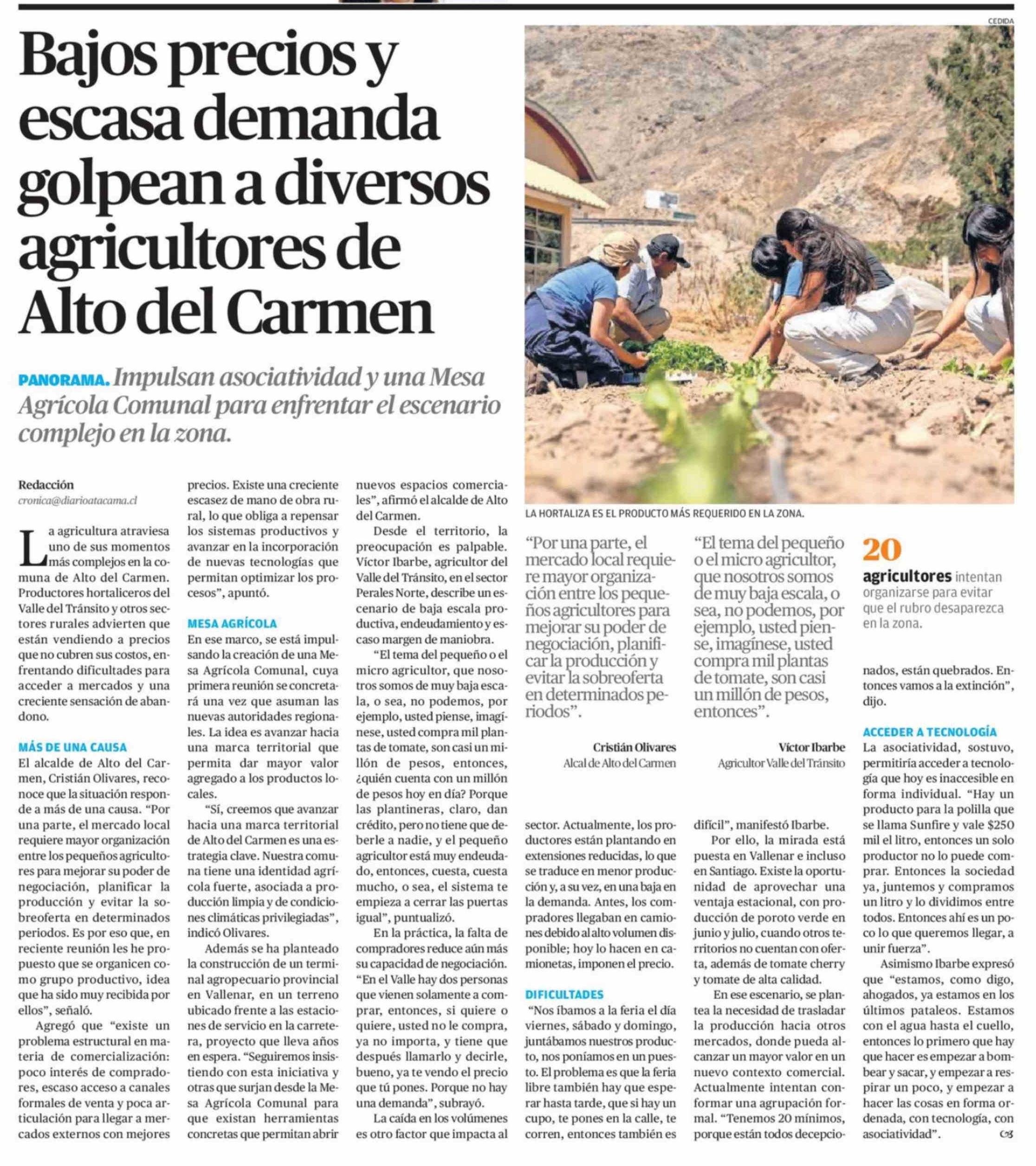 Bajos precios y escasa demanda golpean a diversos agricultores de Alto del Carmen
