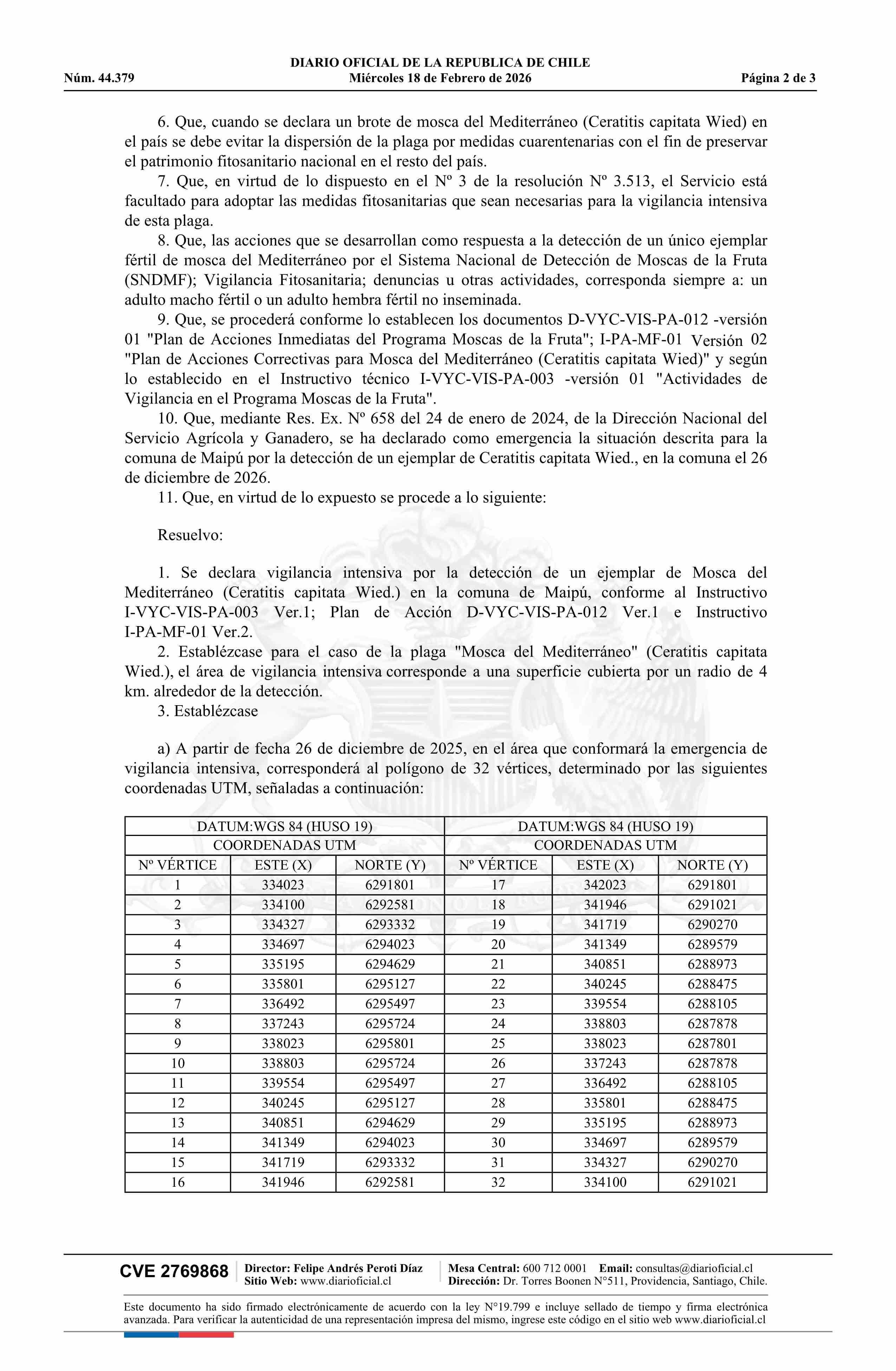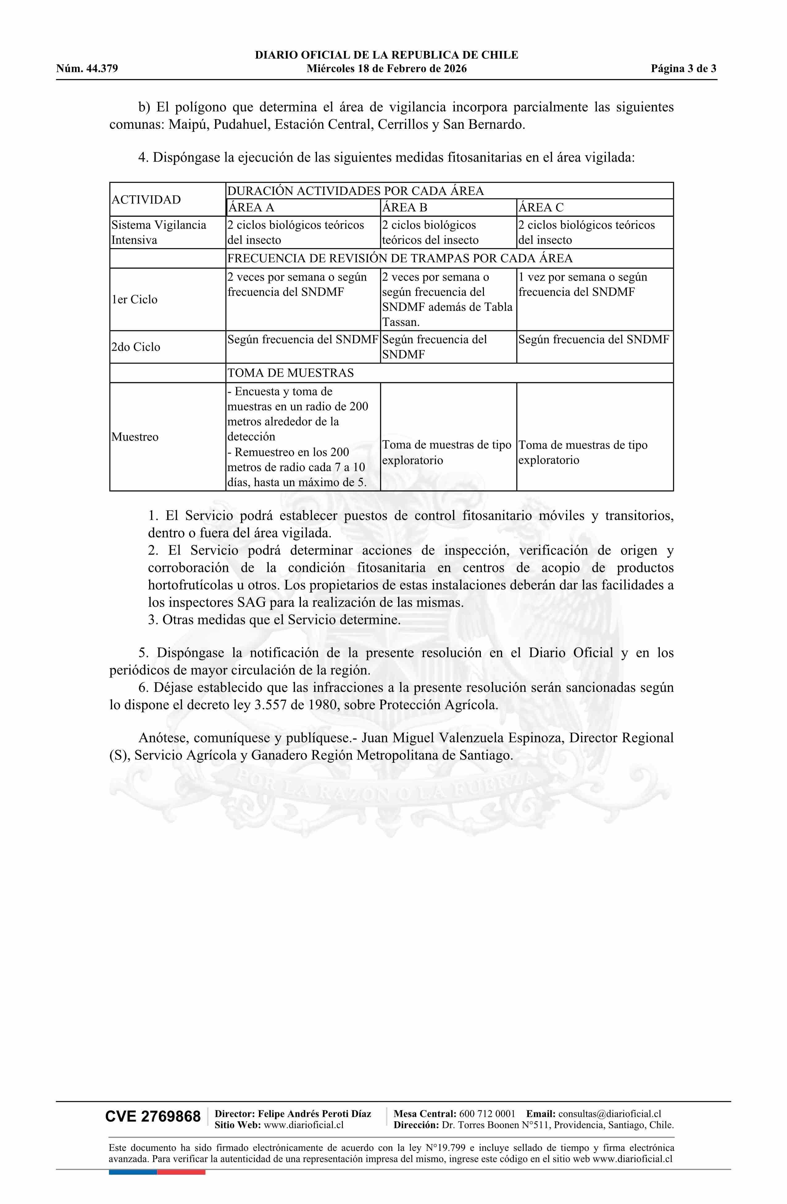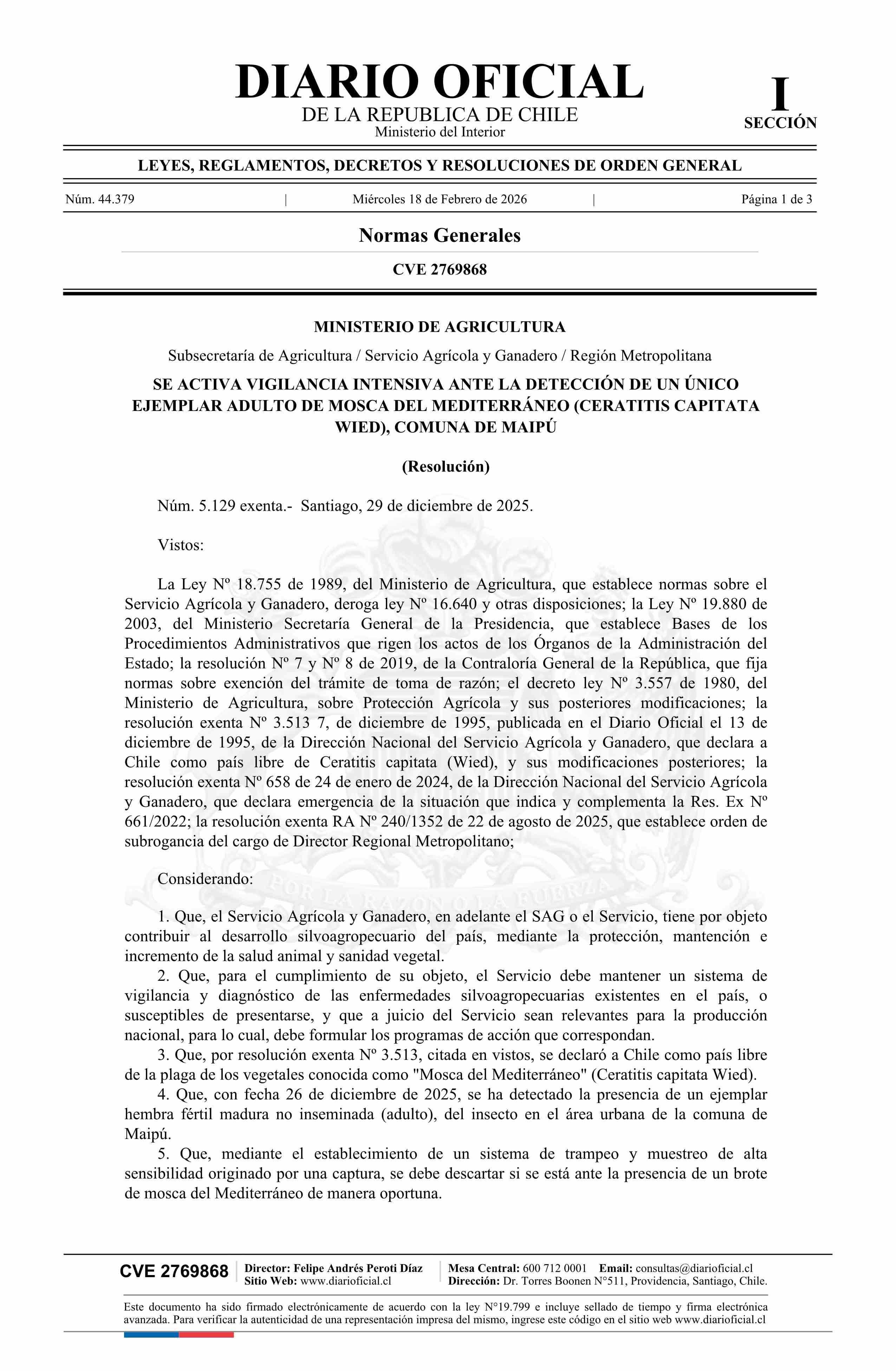 Título: Resolución exenta número 5.129, de 2025.- Declara vigilancia intensiva ante la detección de un único ejemplar adulto de Mosca del Mediterráneo (Ceratitis capitata Wied), comuna de Maipú