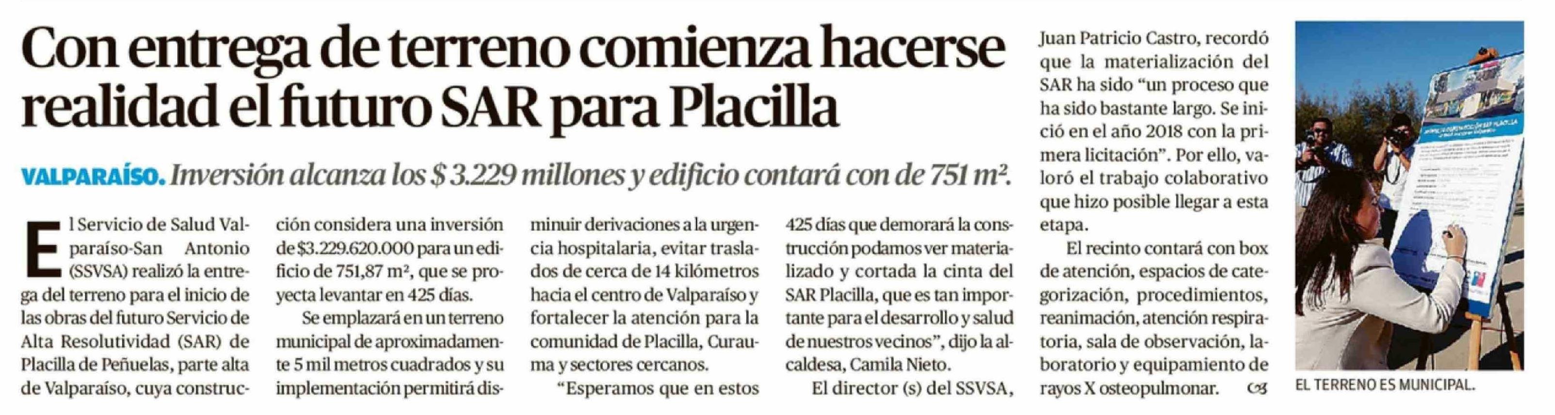Con entrega de terreno comienza hacerse realidad el futuro SAR para Placilla