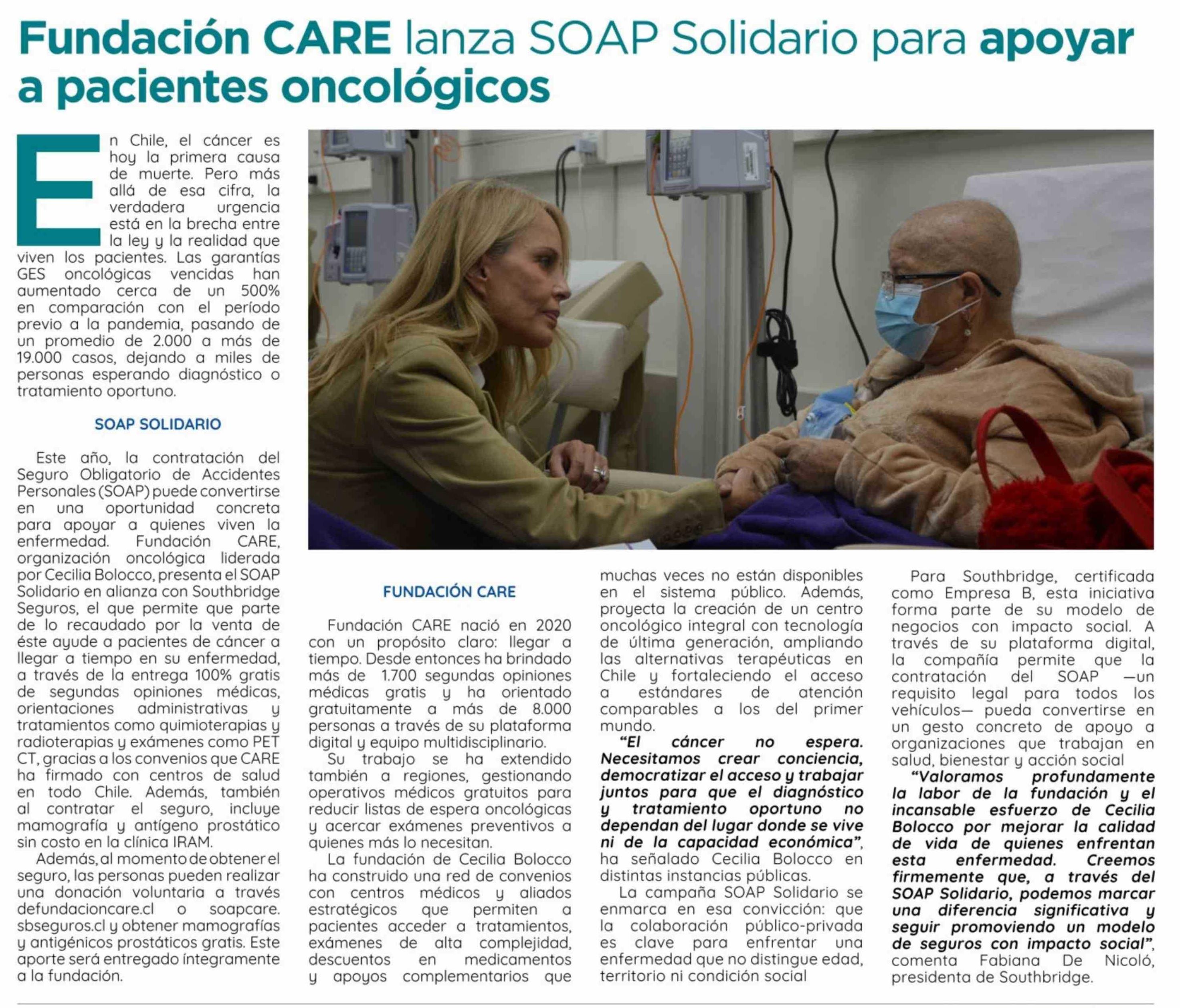 Fundación CARE lanza SOAP Solidario para apoyar a pacientes oncológicos