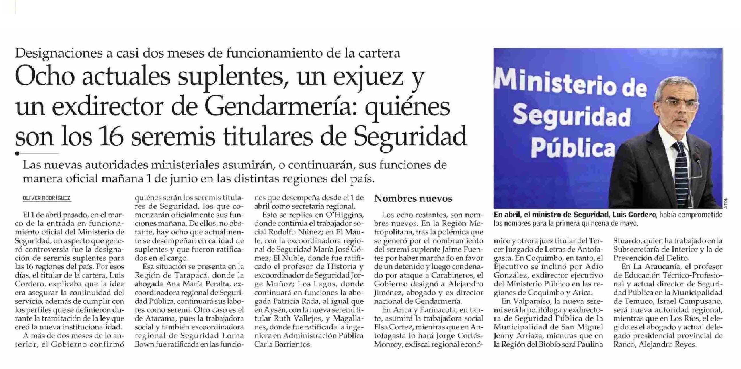 Ocho actuales suplentes, un exjuez y son los 16 seremis titulares de Seguridad