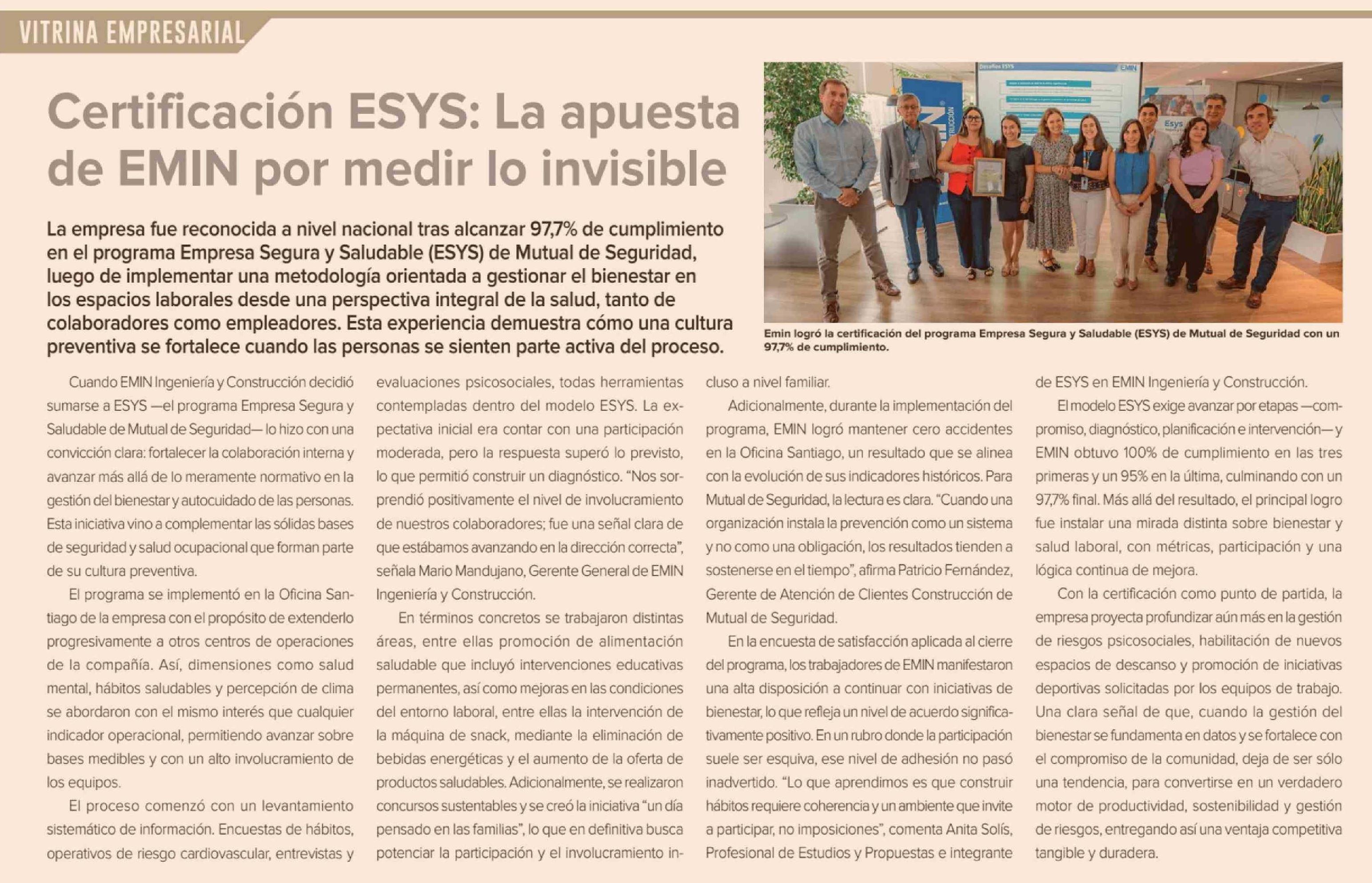 Certificación ESYS: La apuesta de EMIN por medir lo invisible