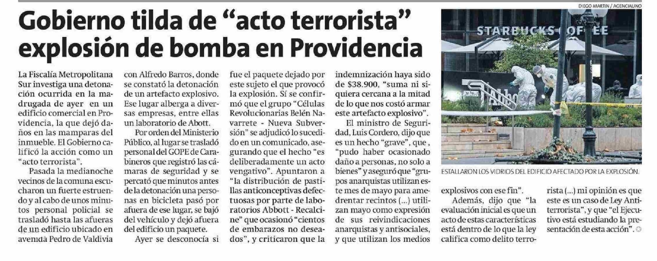 Gobierno tilda de “acto terrorista” explosión de bomba en Providencia