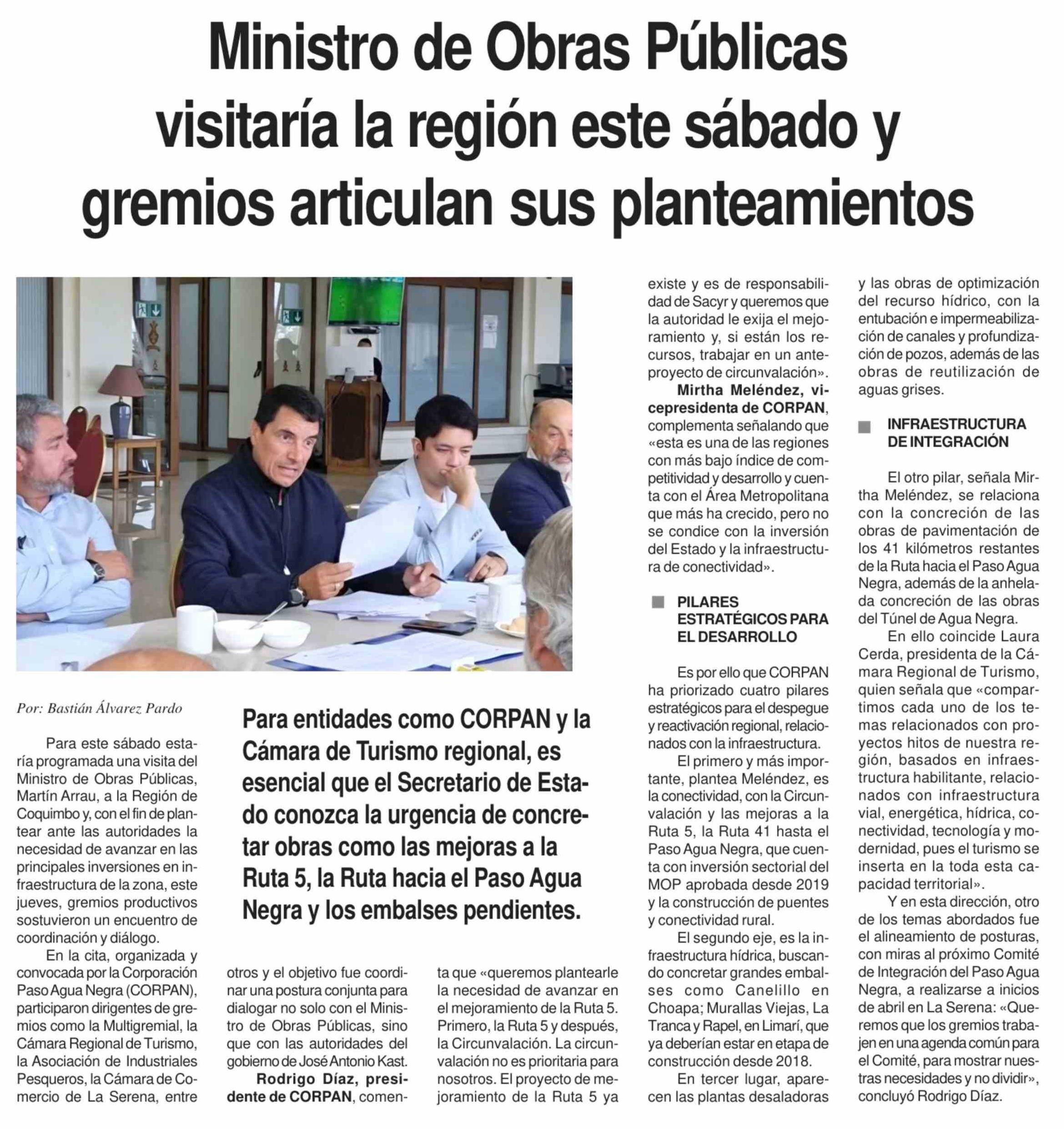 Ministro de Obras Públicas visitaría la región este sábado y gremios articulan sus planteamientos