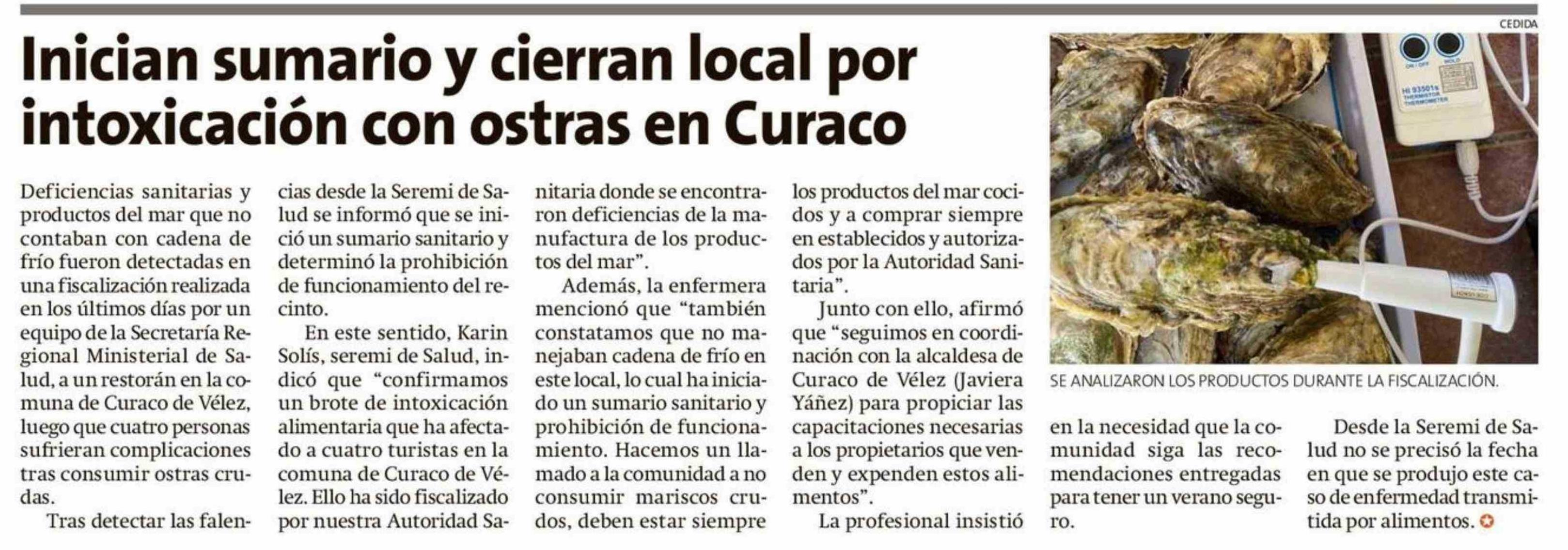 Título: Inician sumario y cierran local por intoxicación con ostras en Curaco