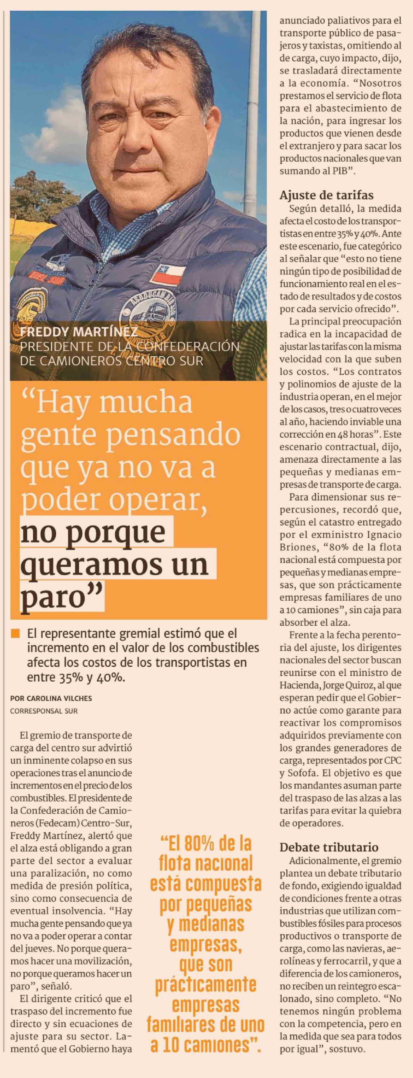 "Hay mucha gente pensando que ya no va a poder operar, no porque queramos un paro"