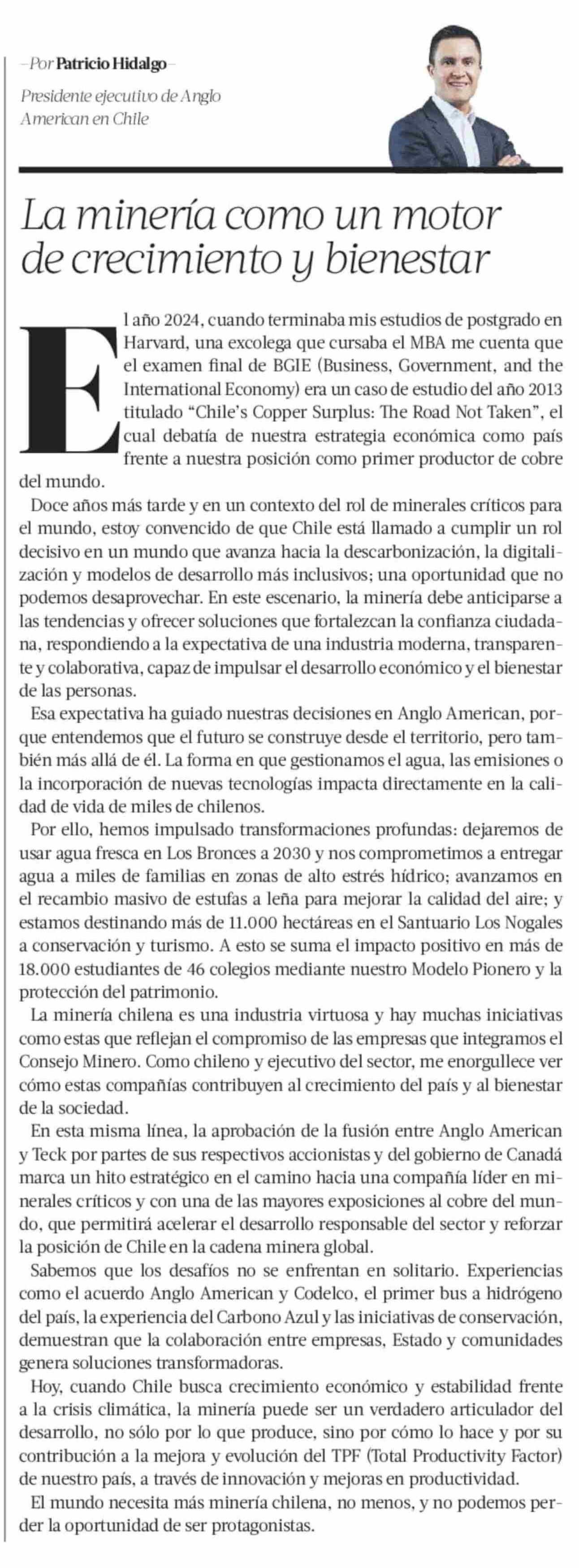 Columnas de Opinión: La minería como un motor de crecimiento y bienestar