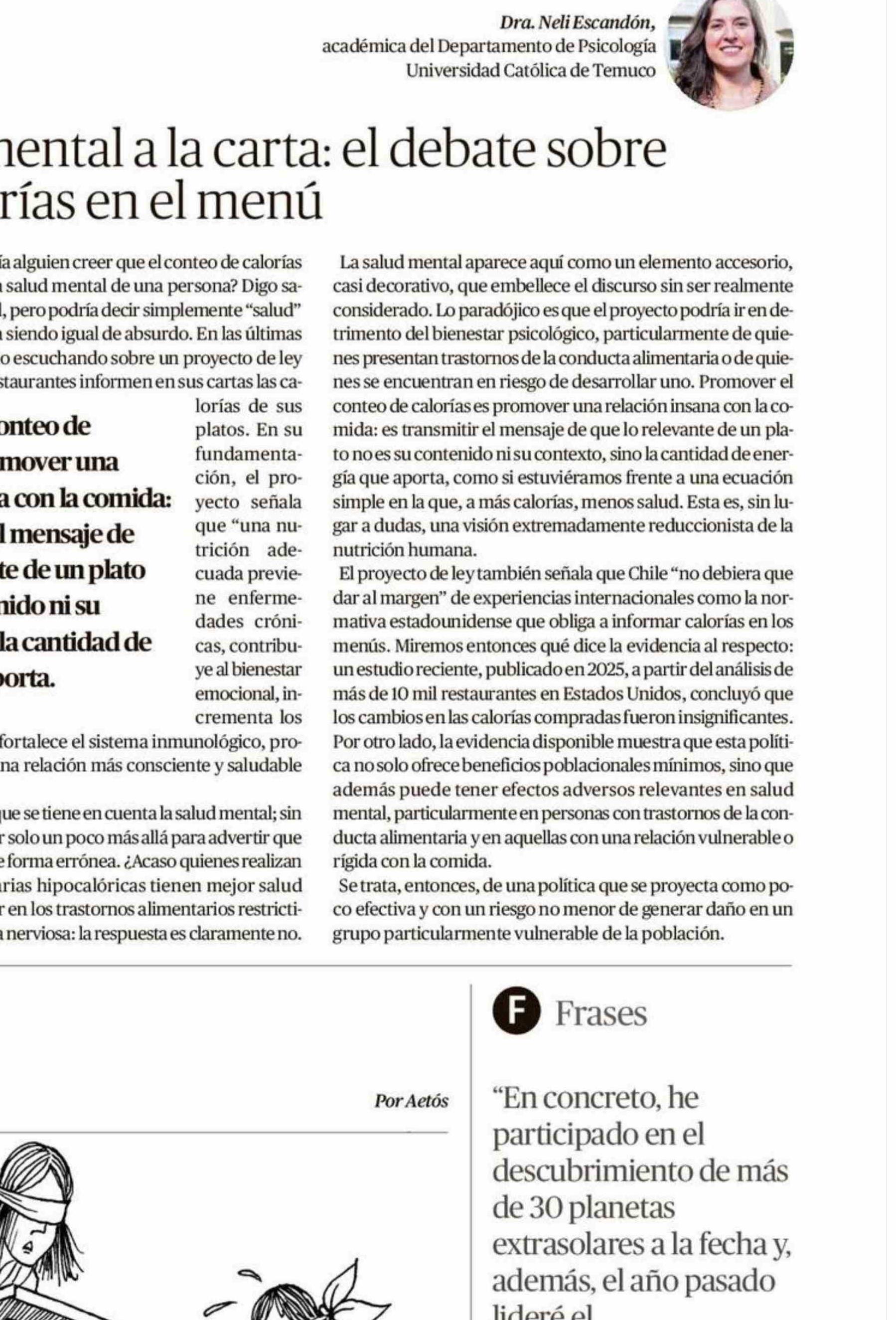 Columnas de Opinión: Salud mental a la carta: el debate sobre las calorías en el menú