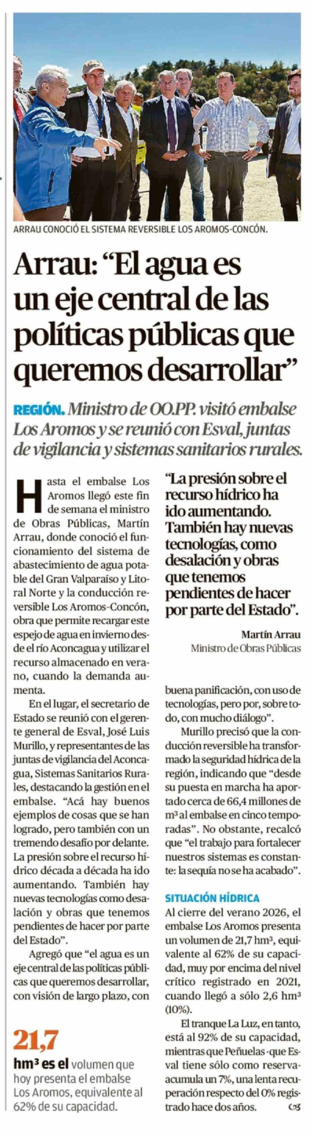 Arrau: "El agua es un eje central de las políticas públicas que queremos desarrollar"