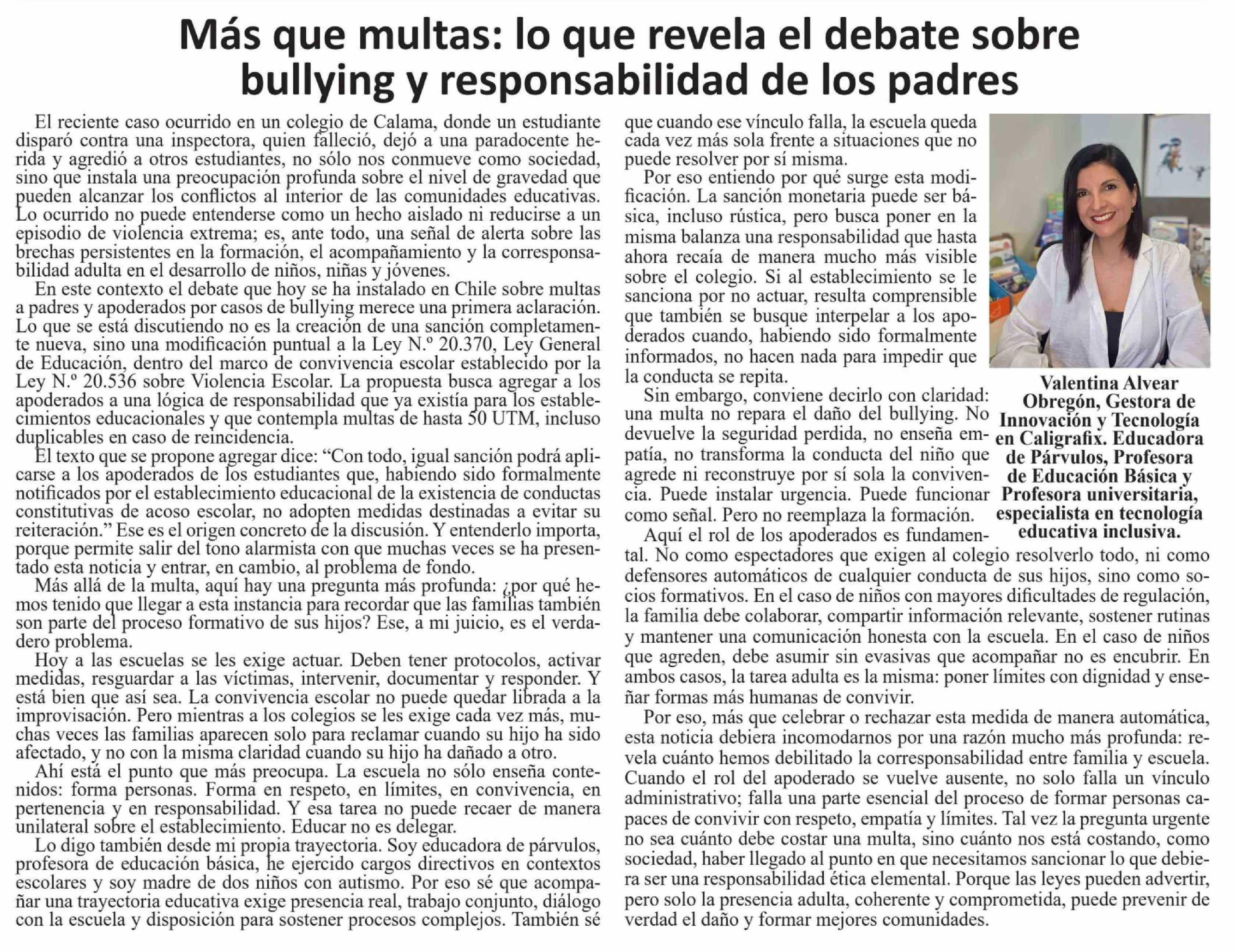 Columnas de Opinión: Más que multas: lo que revela el debate sobre bullying y responsabilidad de los padres