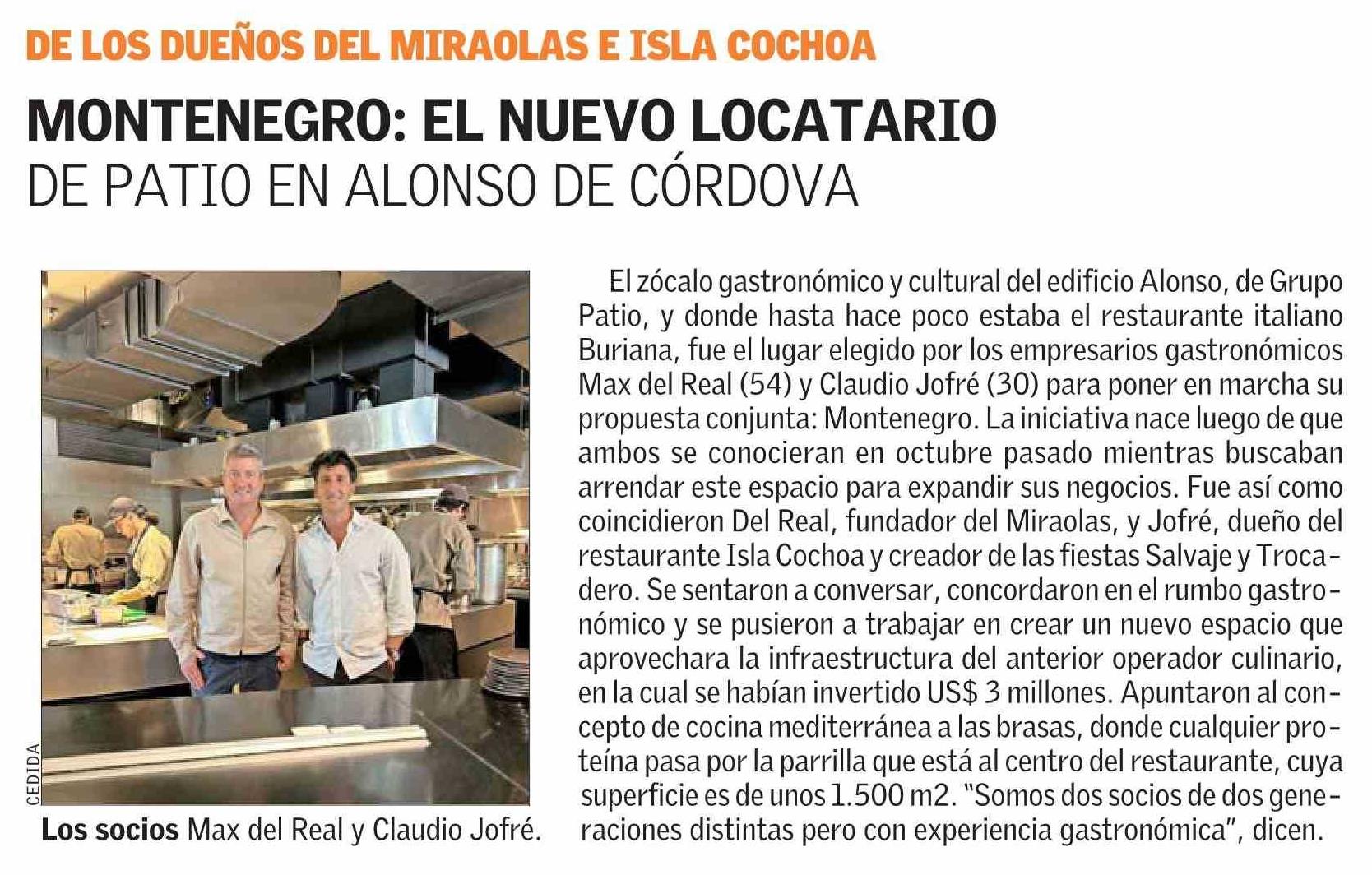 MONTENEGRO: EL NUEVO LOCATARIO DE PATIO EN ALONSO DE CÓRDOVA