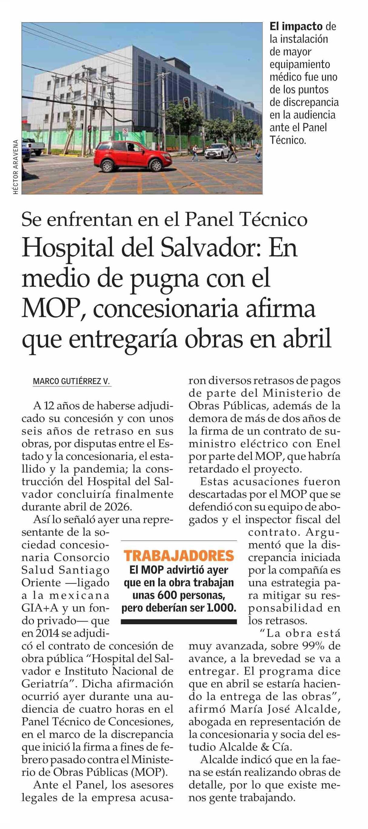 Hospital del Salvador: En medio de pugna con el MOP, concesionaria afirma que entregaría obras en abril