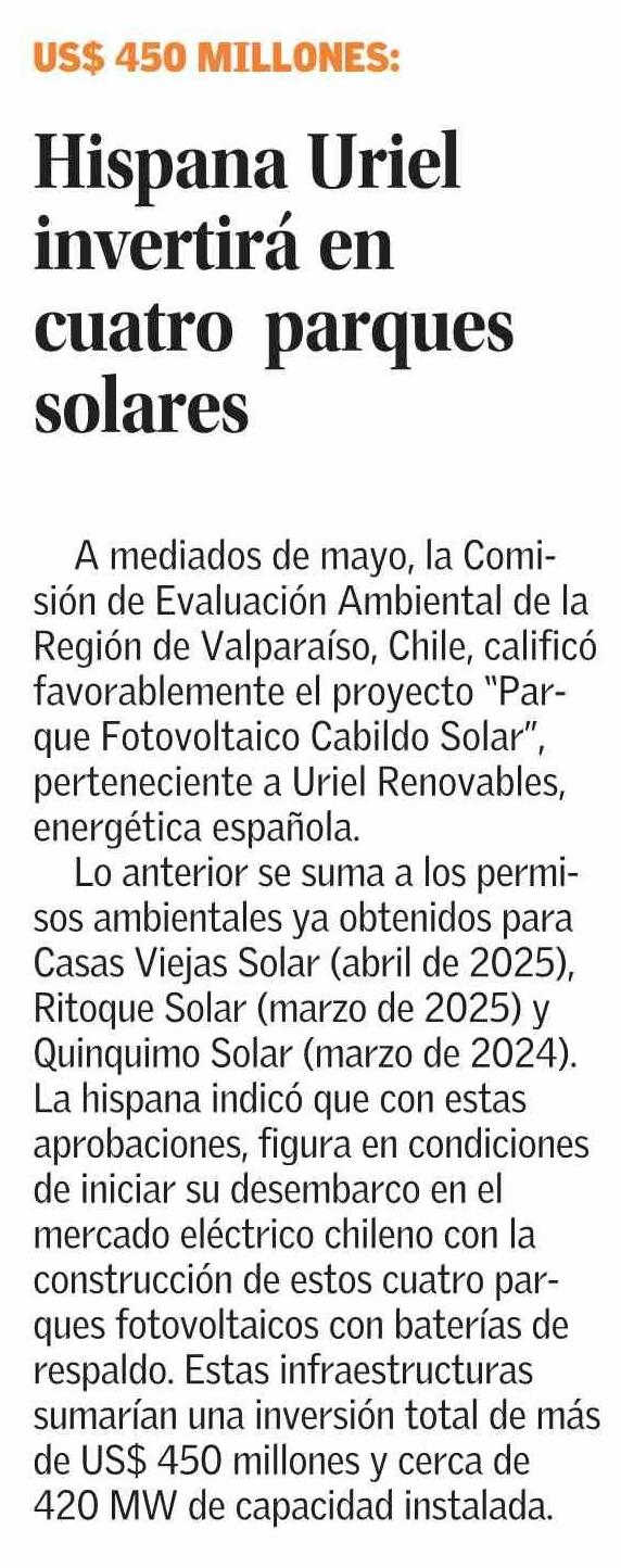 Título: Hispana Uriel invertirá en cuatro parques solares