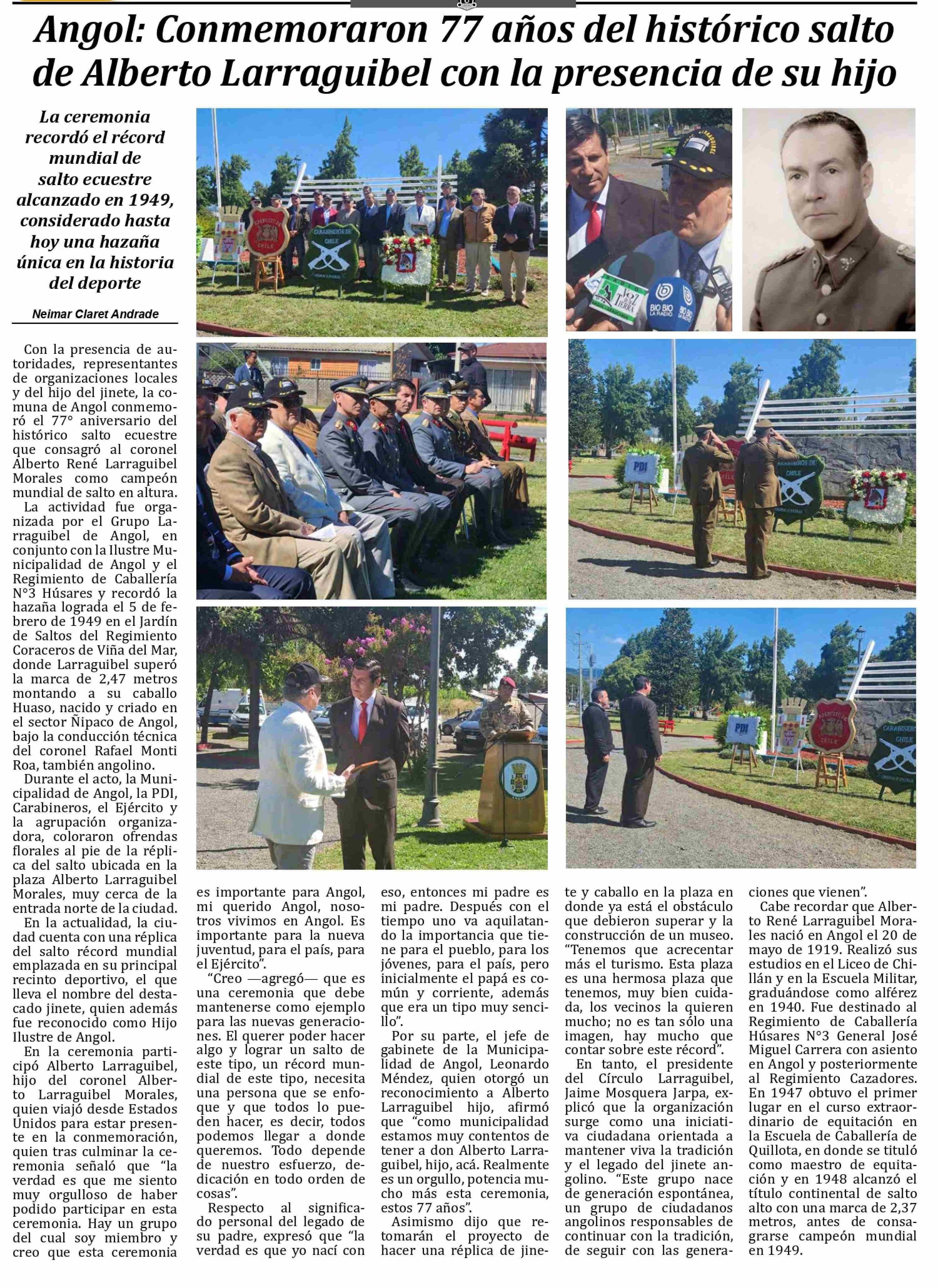 Angol: Conmemoraron 77 años del histórico salto de Alberto Larraguibel con la presencia de su hijo