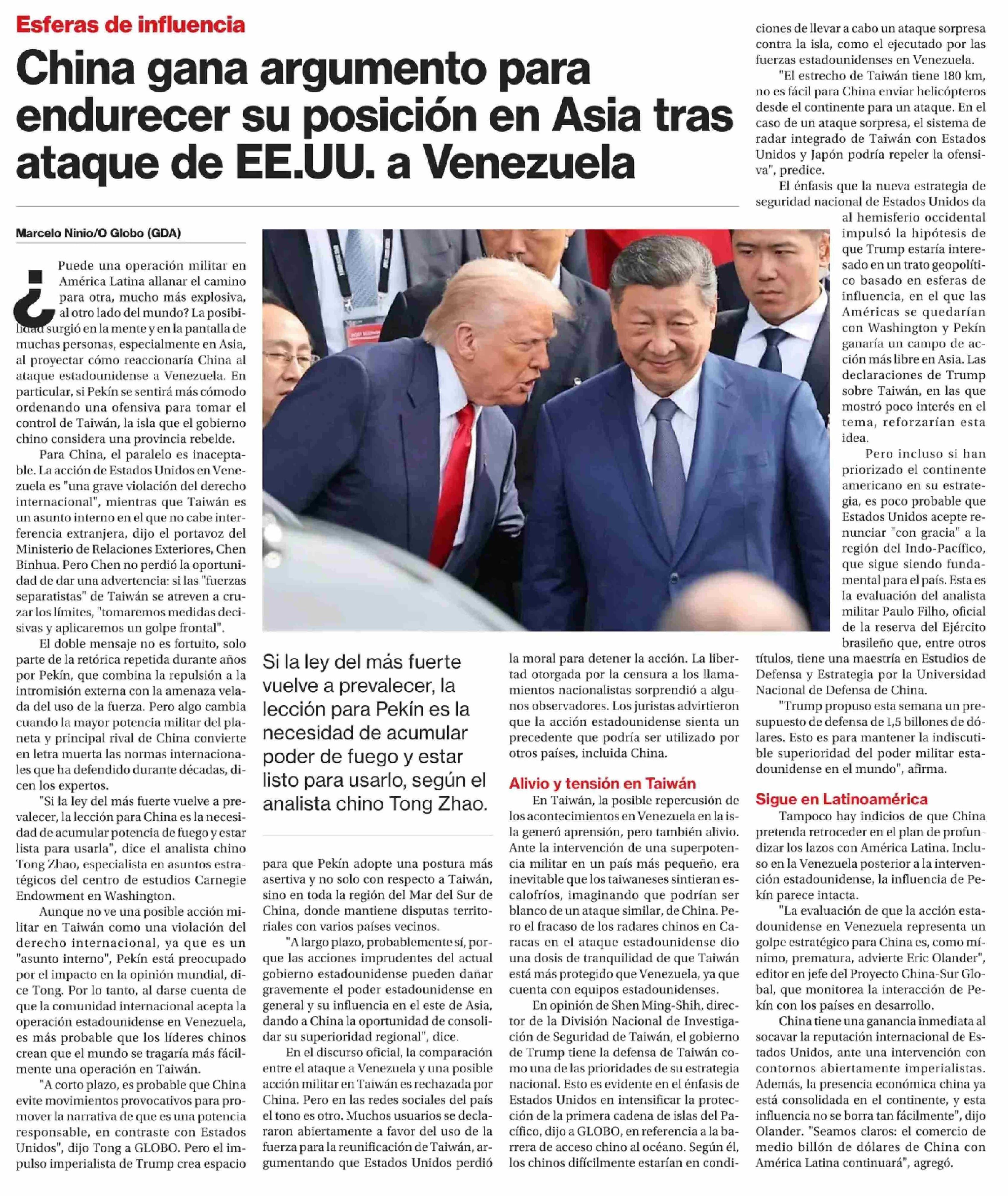China gana argumento para endurecer su posición en Asia tras ataque de EE.UU. a Venezuela
