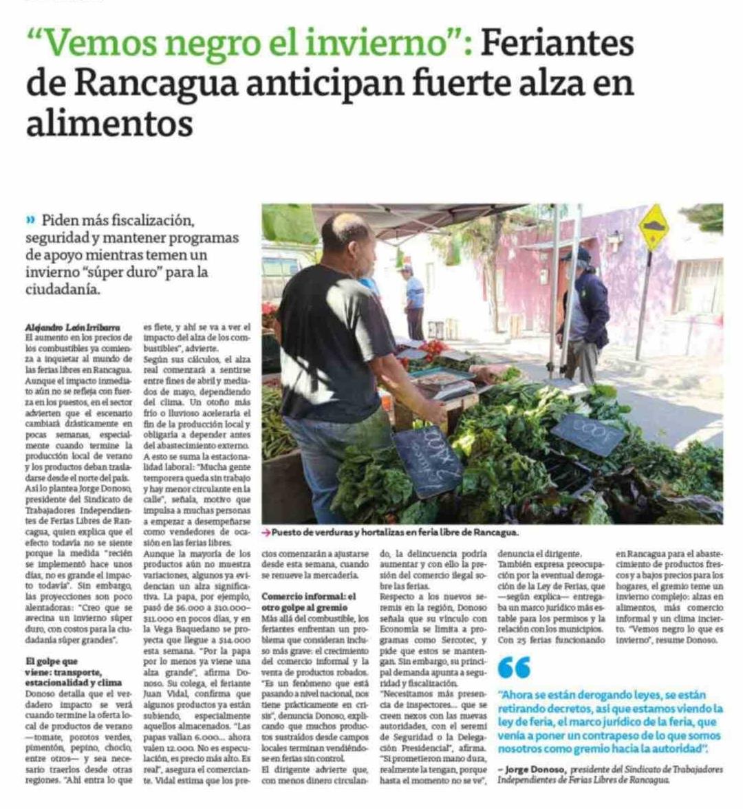 "Vemos negro el invierno": Feriantes de Rancagua anticipan fuerte alza en alimentos