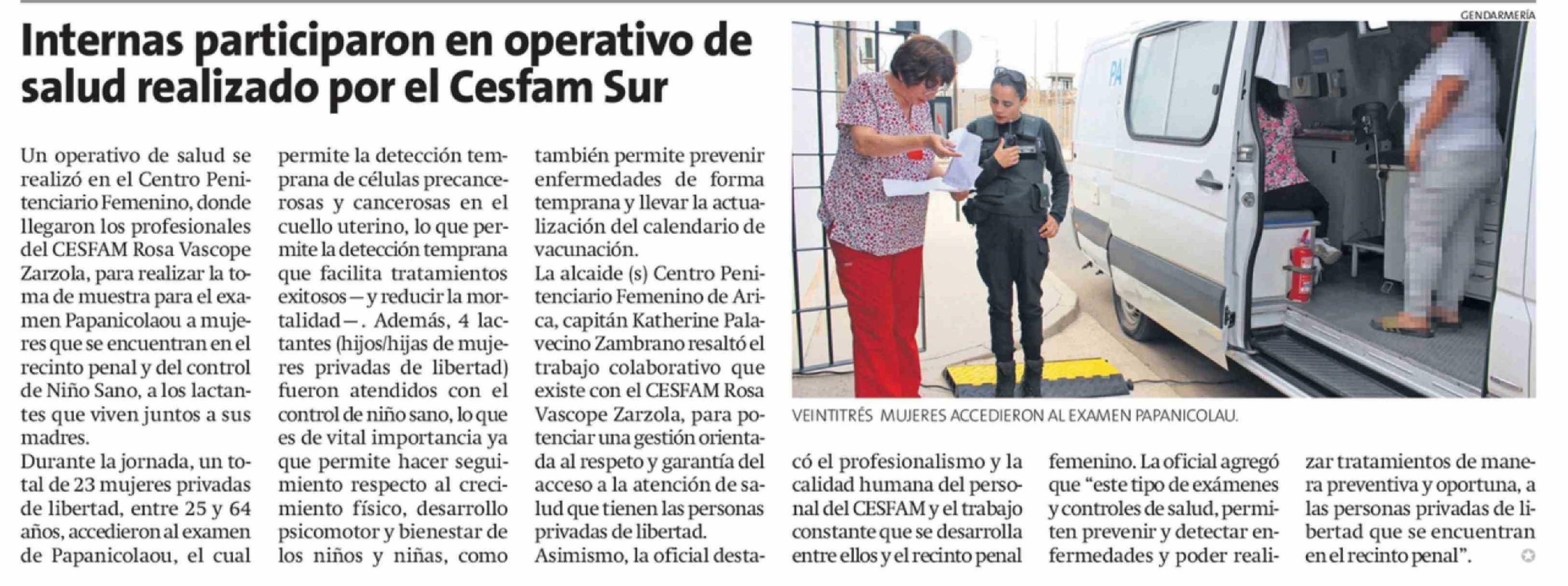 Internas participaron en operativo de salud realizado por el Cesfam Sur