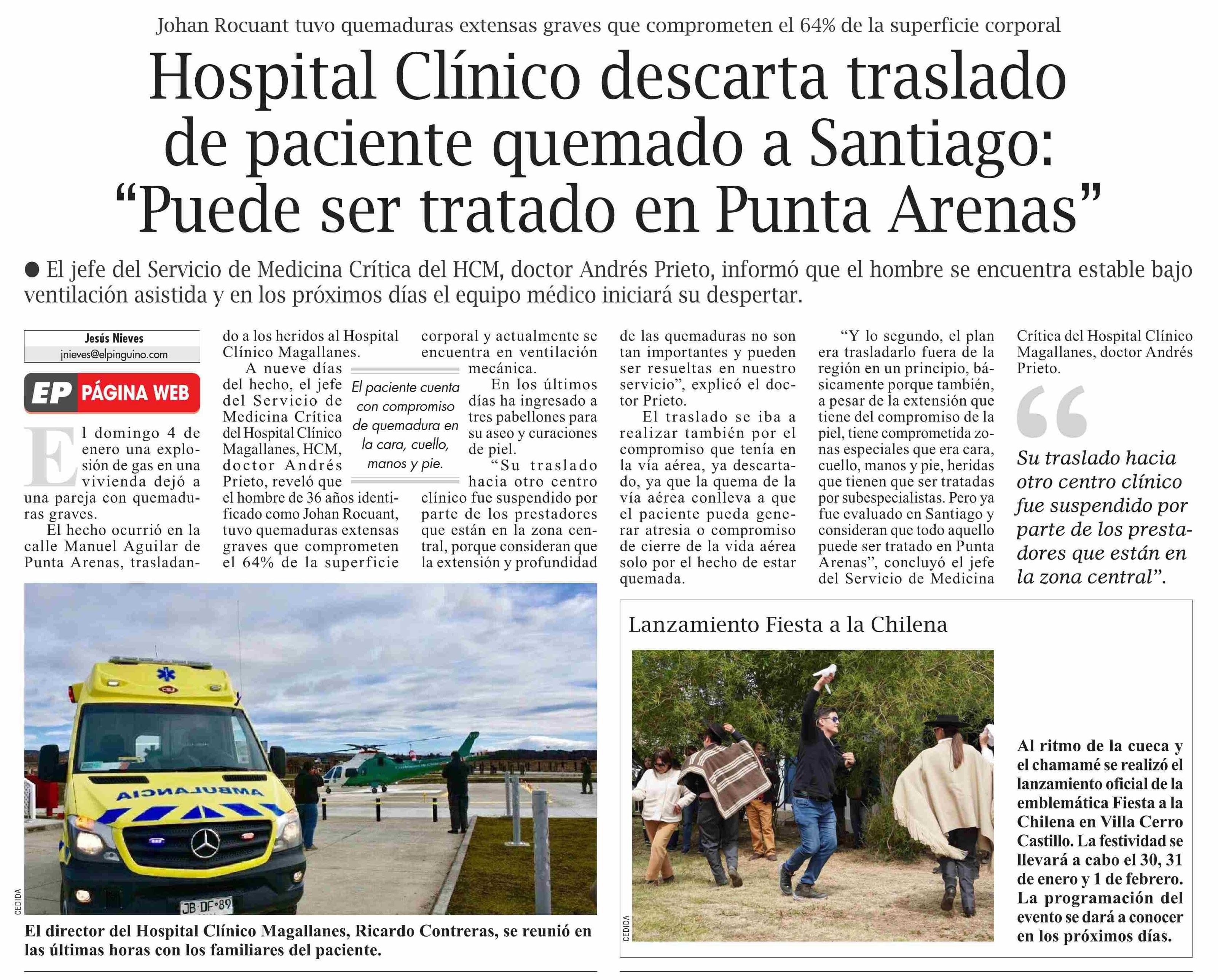 Hospital Clínico descarta traslado de paciente quemado a Santiago: "Puede ser tratado en Punta Arenas"