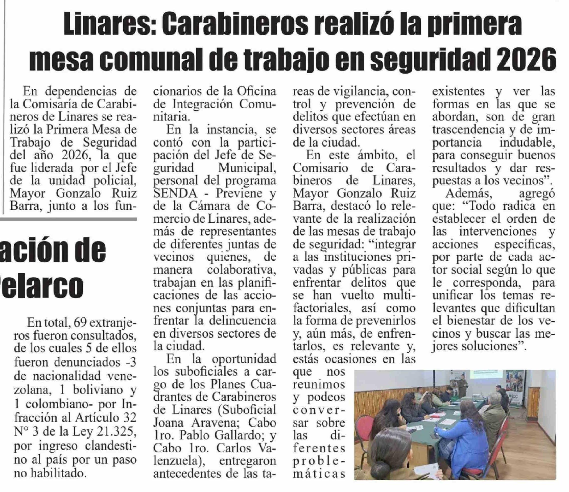 Linares: Carabineros realizó la primera mesa comunal de trabajo en seguridad 2026
