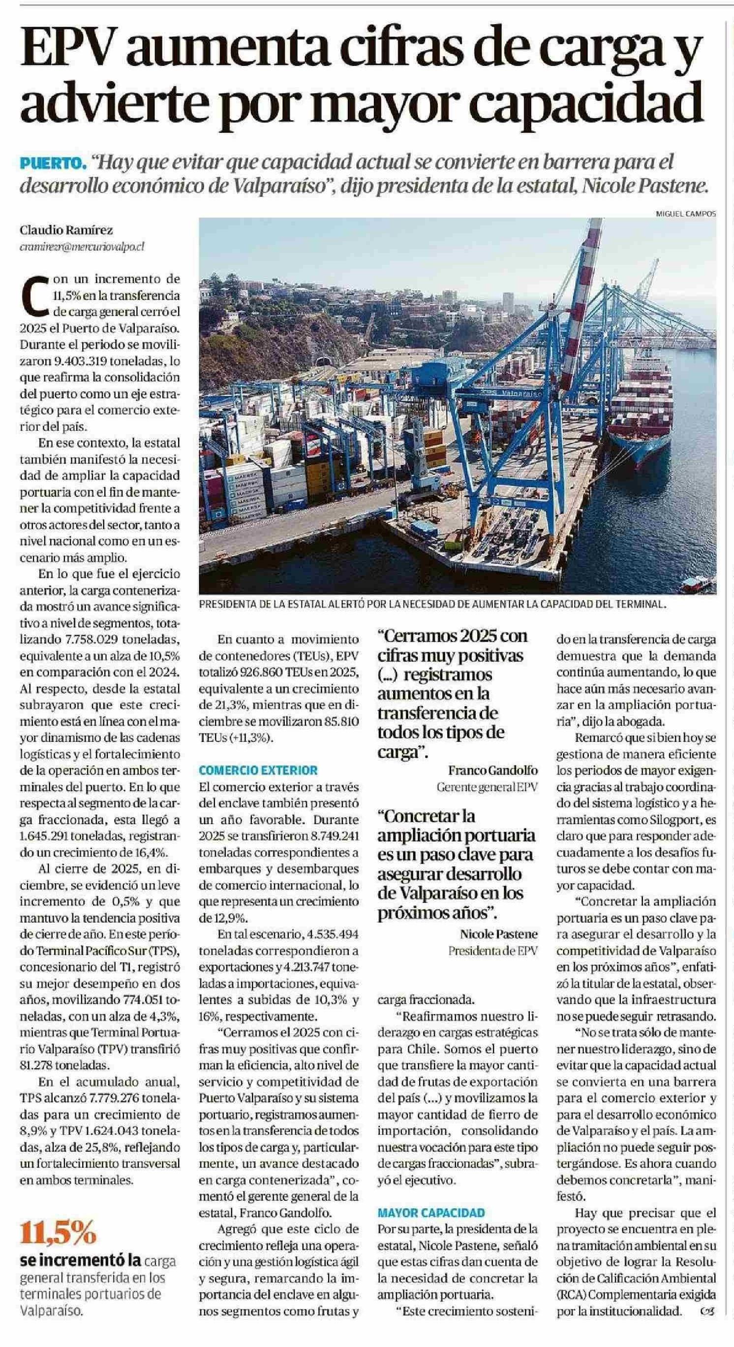 EPV aumenta cifras de carga y advierte por mayor capacidad