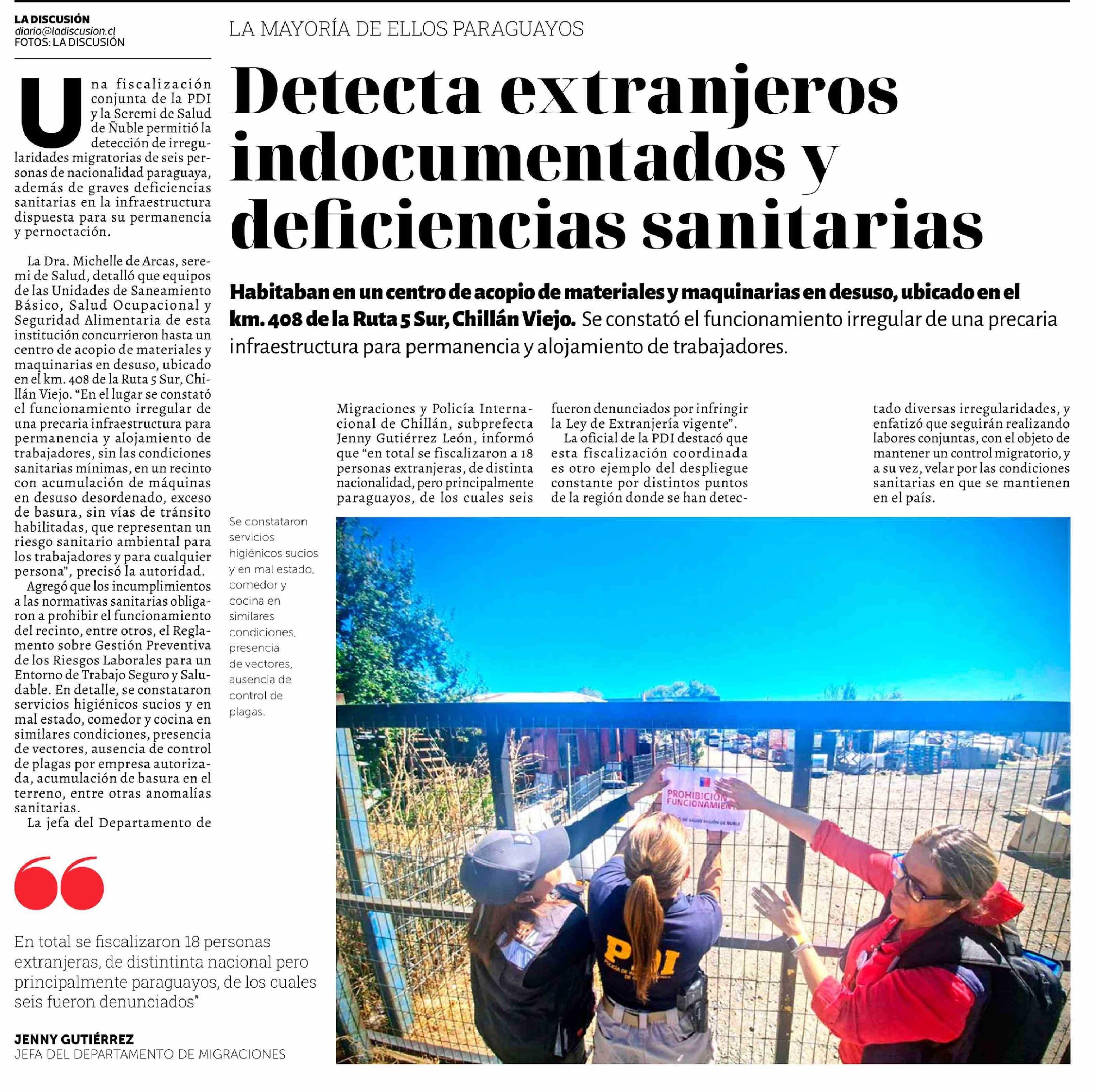 Detecta extranjeros indocumentados y deficiencias sanitarias