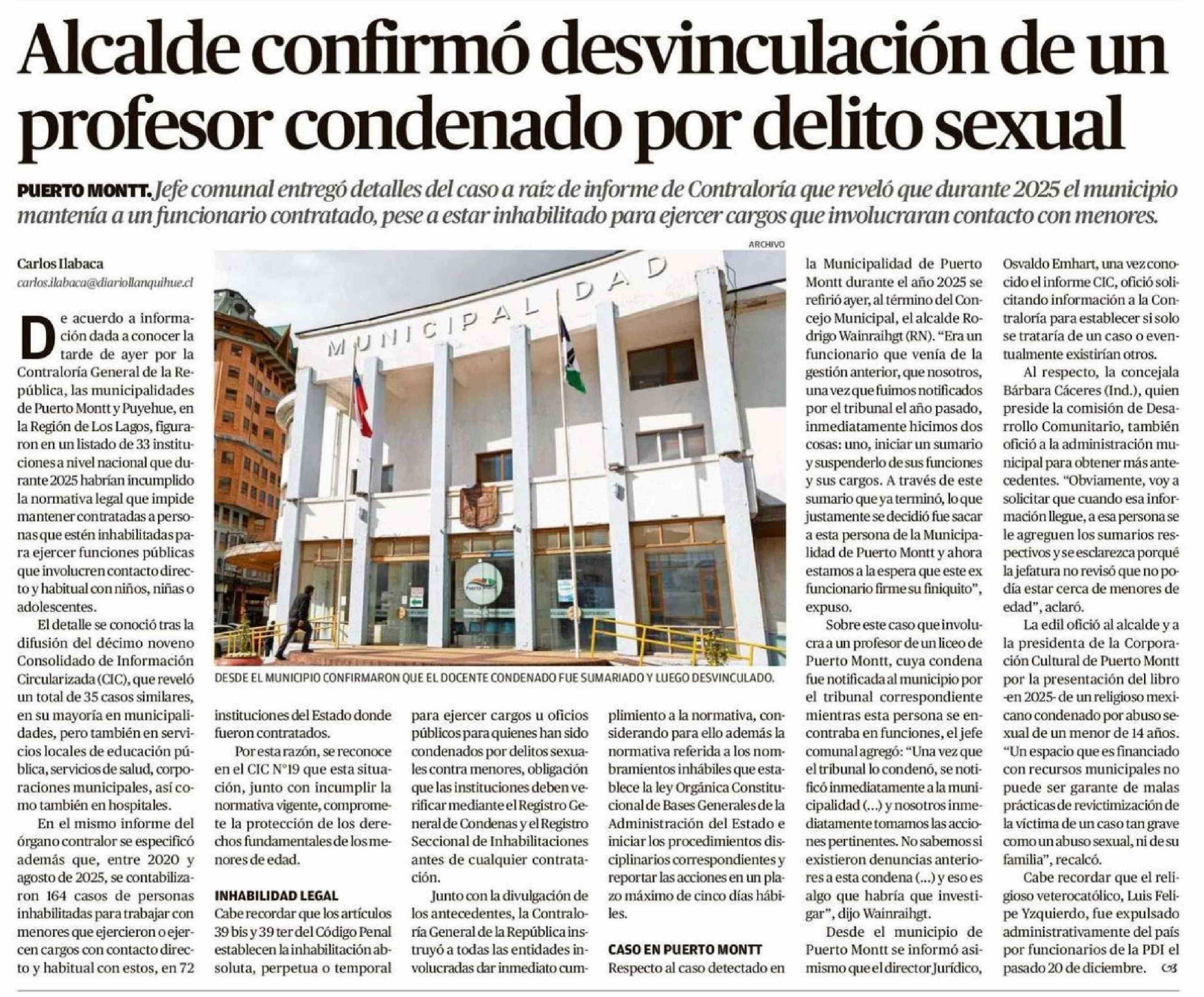 Título: Alcalde confirmó desvinculación de un profesor condenado por delito sexual