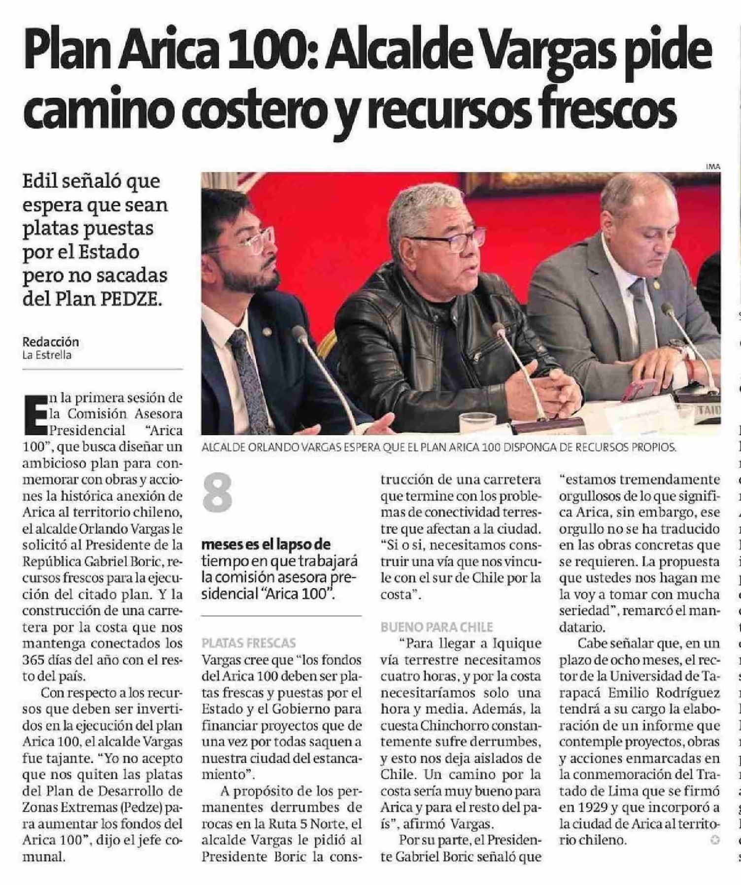 Plan Arica 100: Alcalde Vargas pide camino costero y recursos frescos