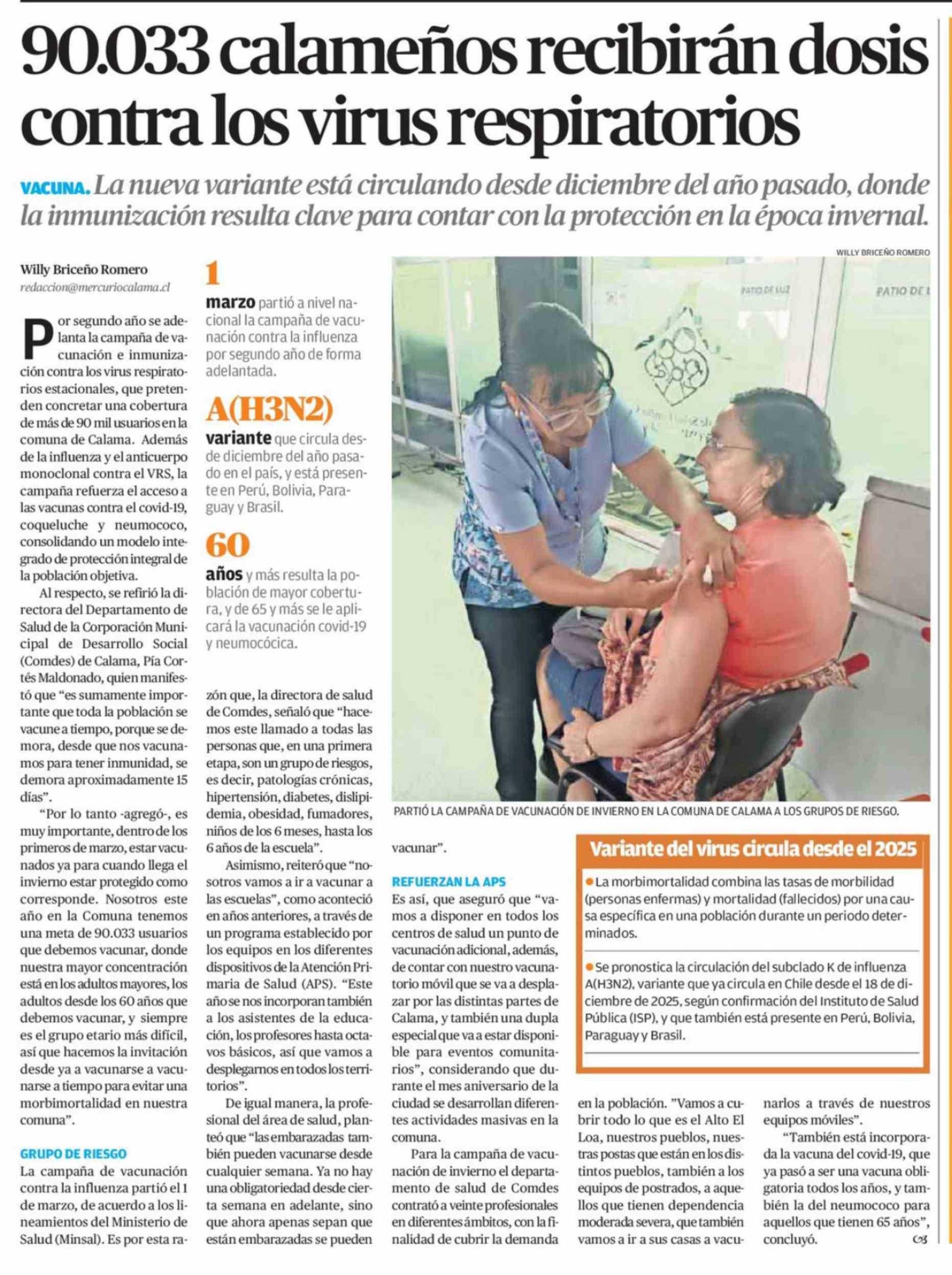 90.033 Calameños recibirán dosis contra los virus respiratorios