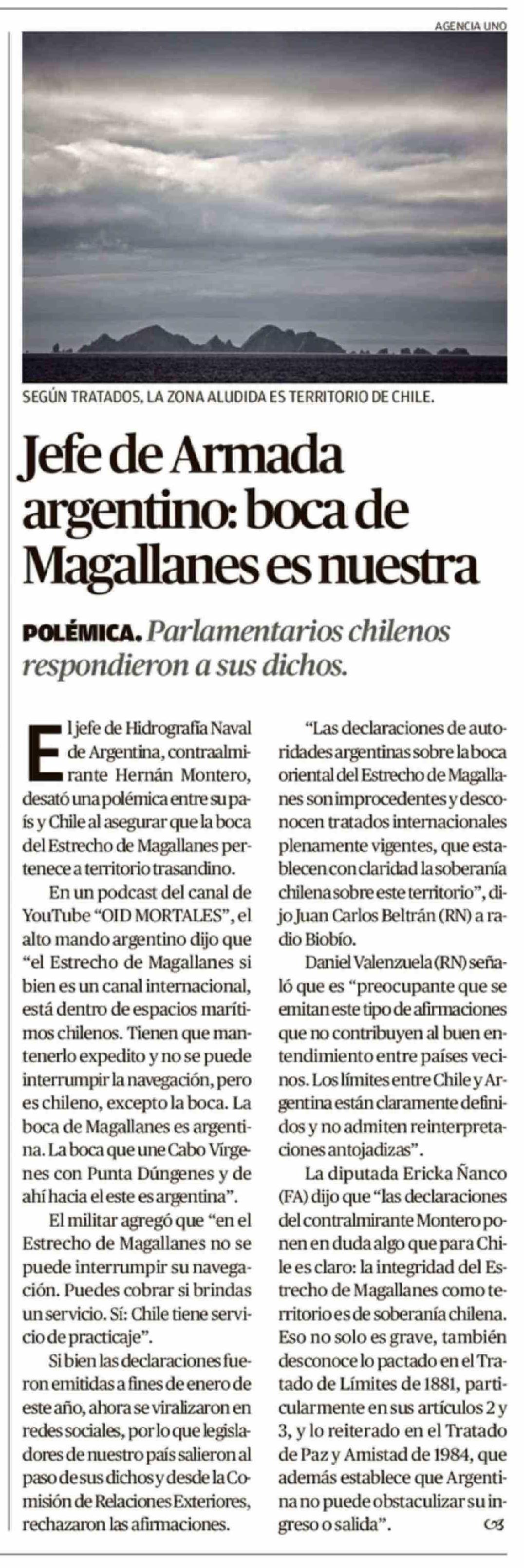 Jefe de Armada argentino: boca de Magallanes es nuestra
