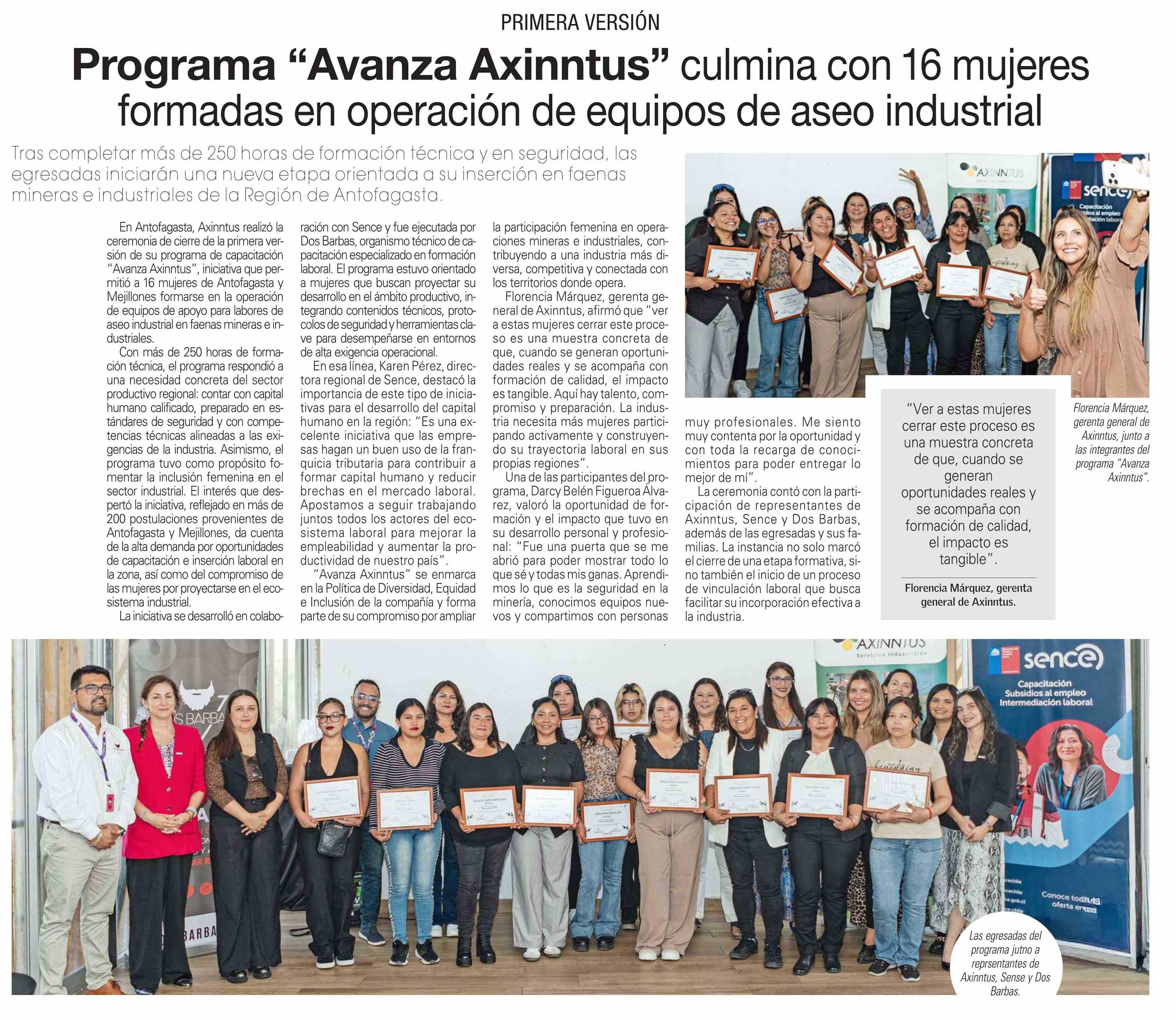 Programa “Avanza Axinntus” culmina con 16 mujeres formadas en operación de equipos de aseo industrial