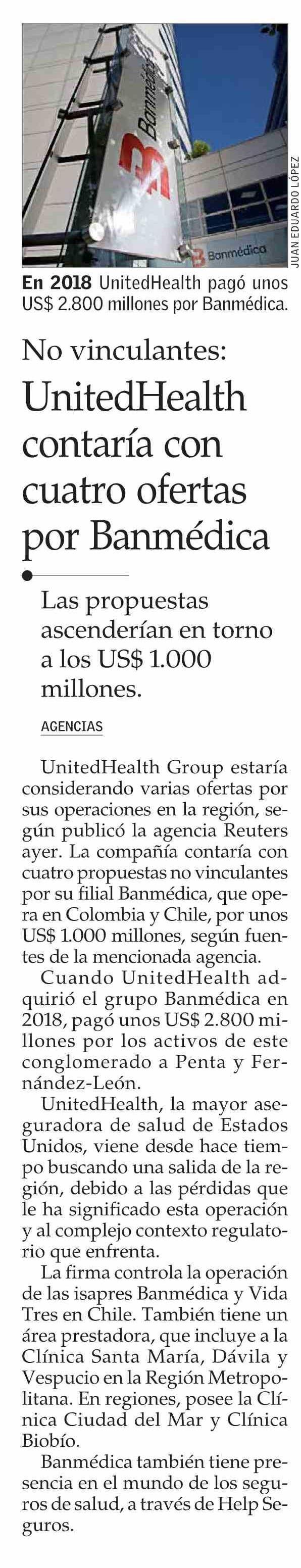 UnitedHealth contaría con cuatro ofertas por Banmédica