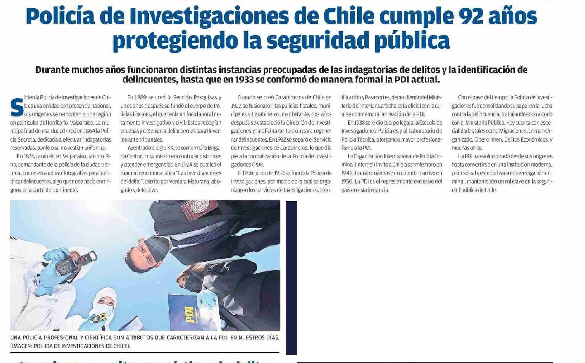 Policía de Investigaciones de Chile cumple 92 años protegiendo la seguridad pública