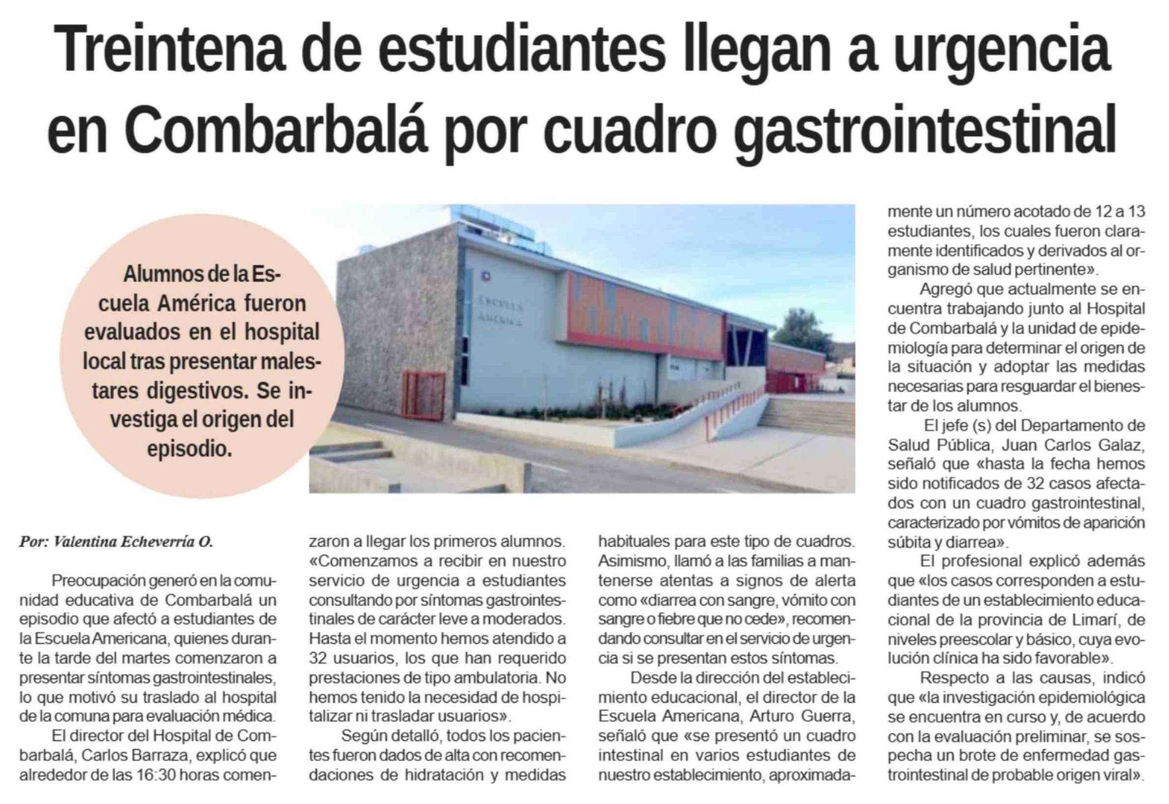 Treintena de estudiantes llegan a urgencia en Combarbalá por cuadro gastrointestinal