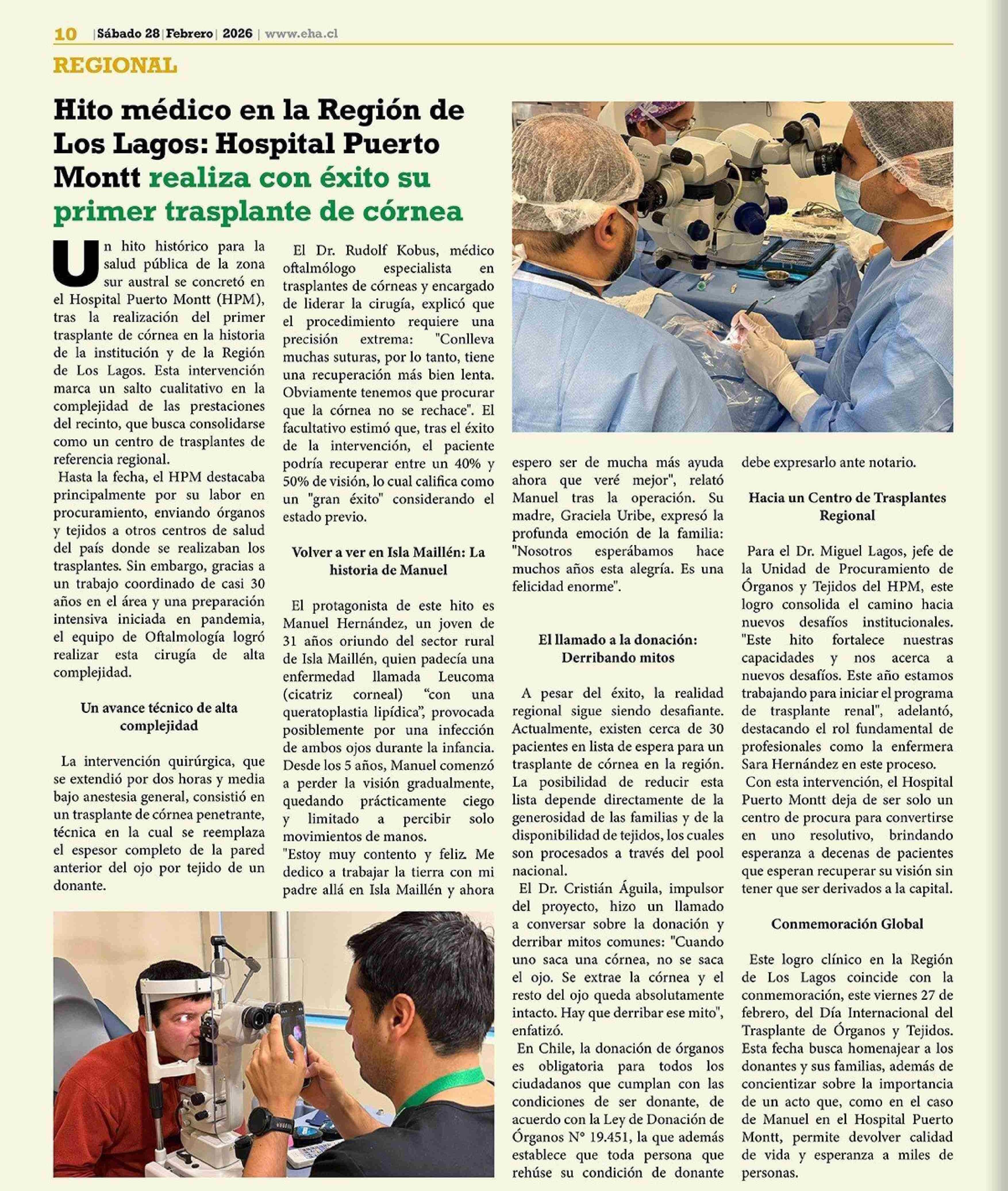 Hito médico en la Región de Los Lagos: Hospital Puerto Montt realiza con éxito su primer transplante de córneas