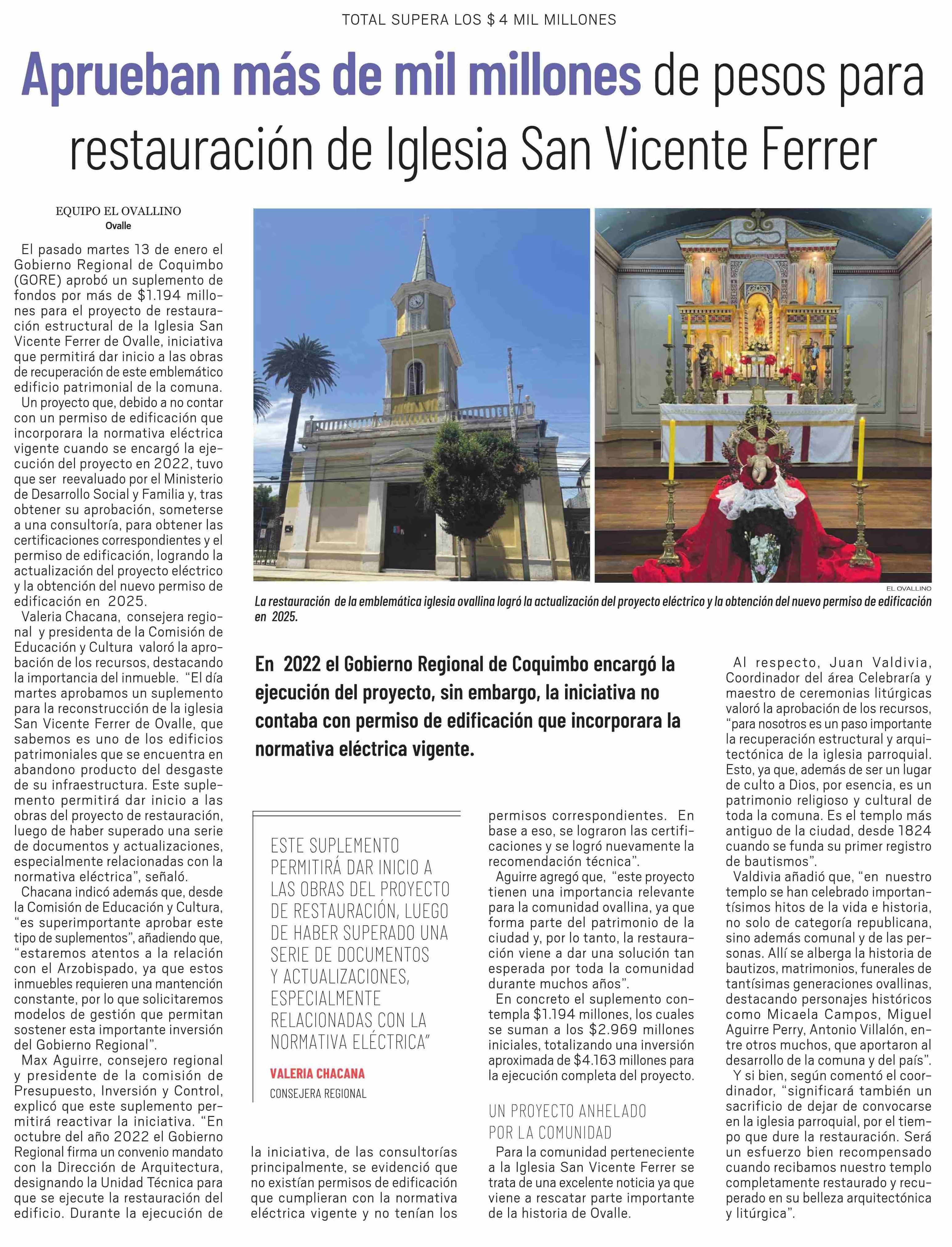 Aprueban más de mil millones de pesos para restauración de Iglesia San Vicente Ferrer