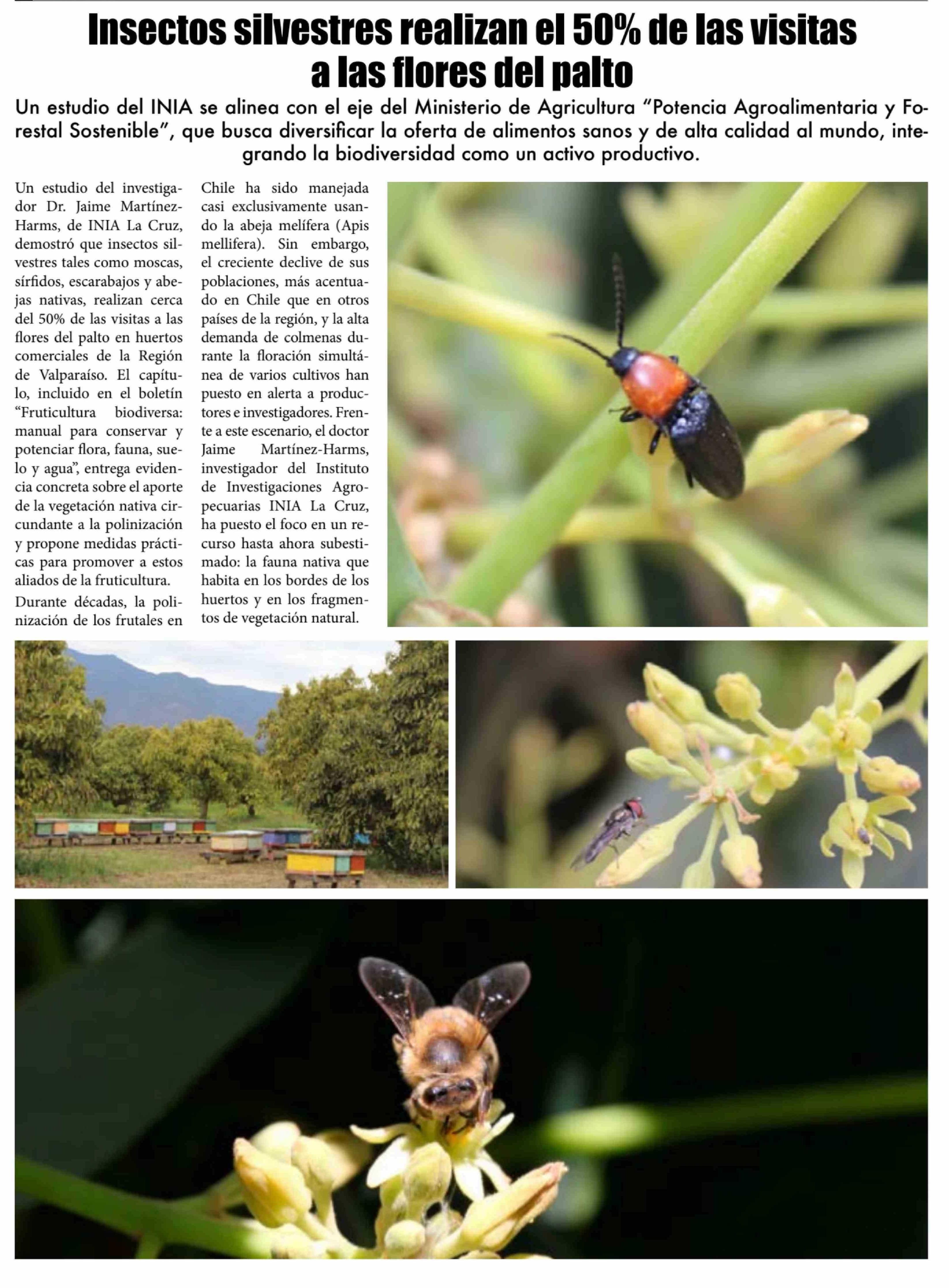 Insectos silvestres realizan el 50% de las visitas a las flores del palto