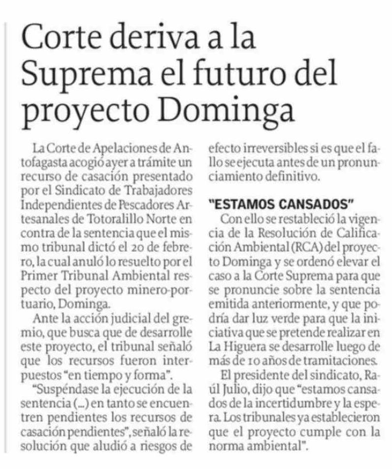 Corte deriva a la Suprema el futuro del proyecto Dominga