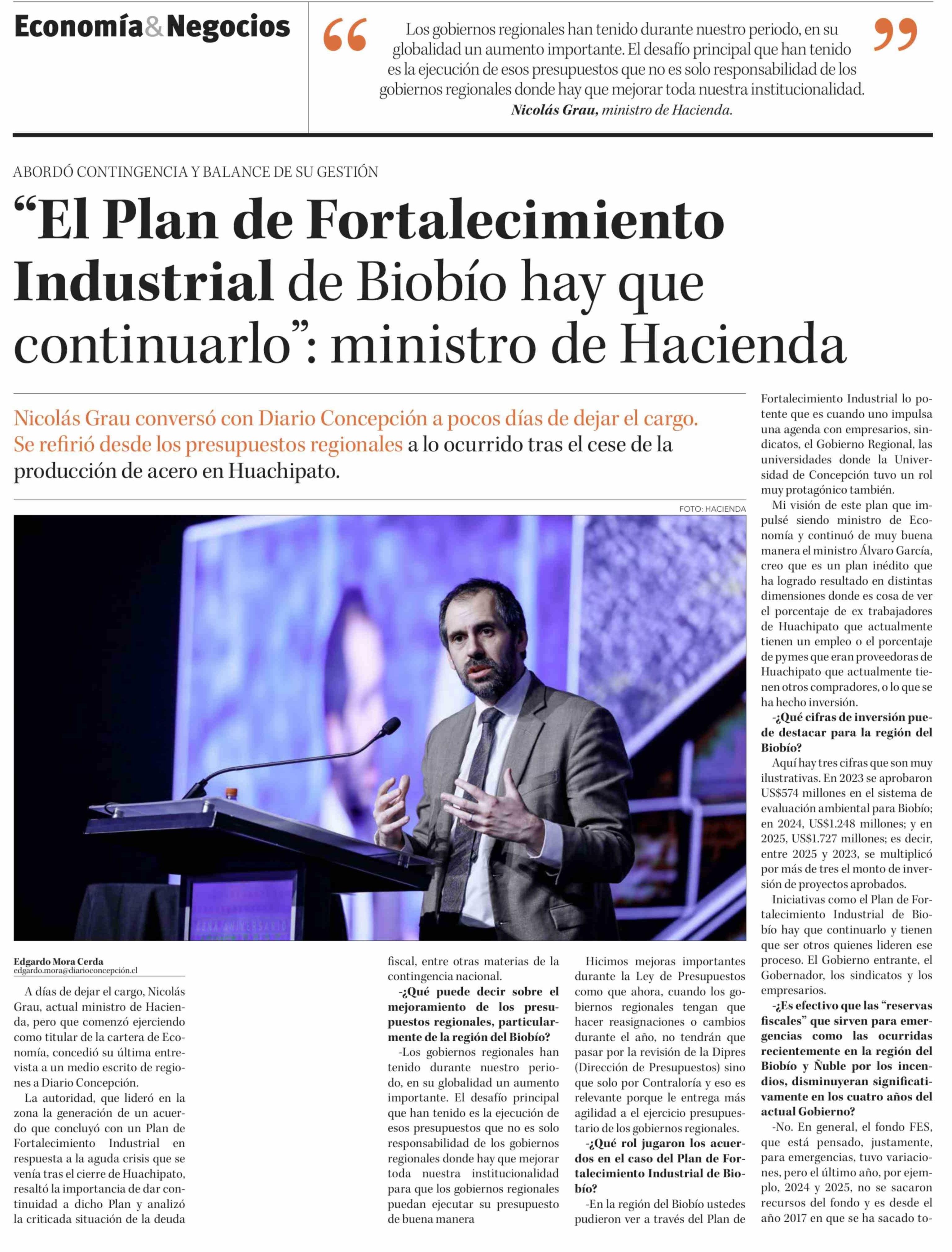 "El Plan de Fortalecimiento Industrial de Biobío hay que continuarlo": ministro de Hacienda