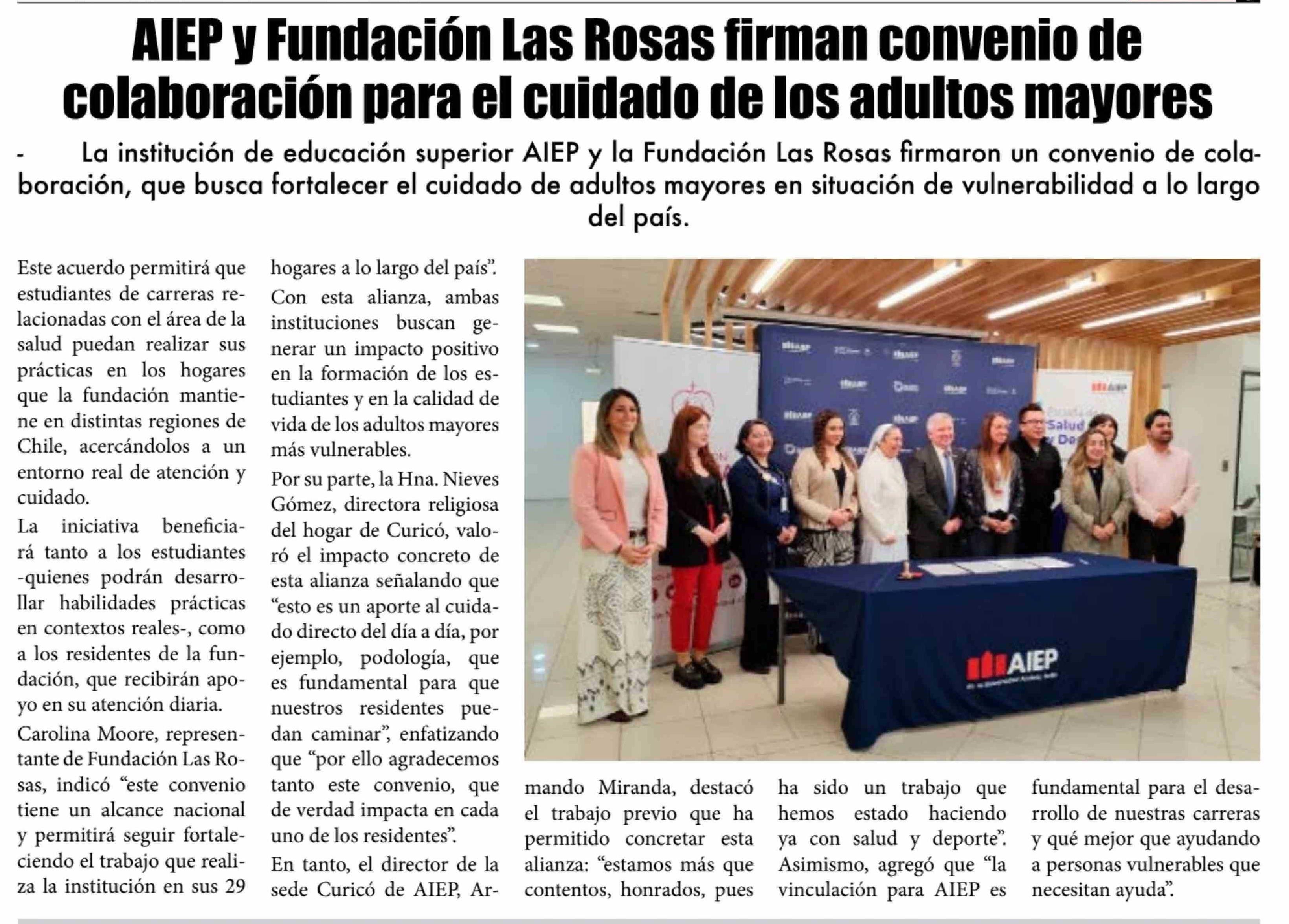 Título: AIEP y Fundación Las Rosas firman convenio de colaboración para el cuidado de los adultos mayores