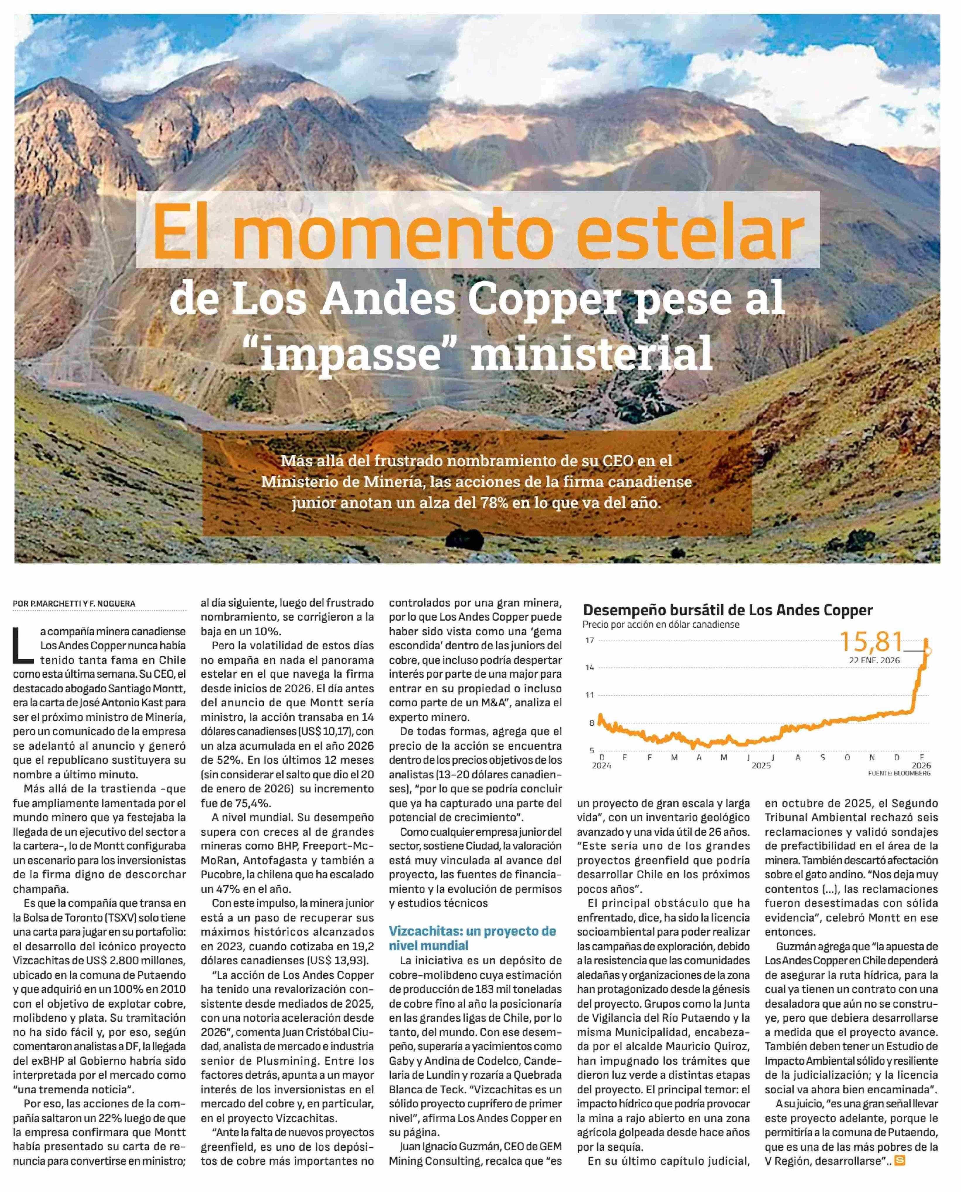 El momento estelar de Los Andes Copper pese al "impasse" ministerial