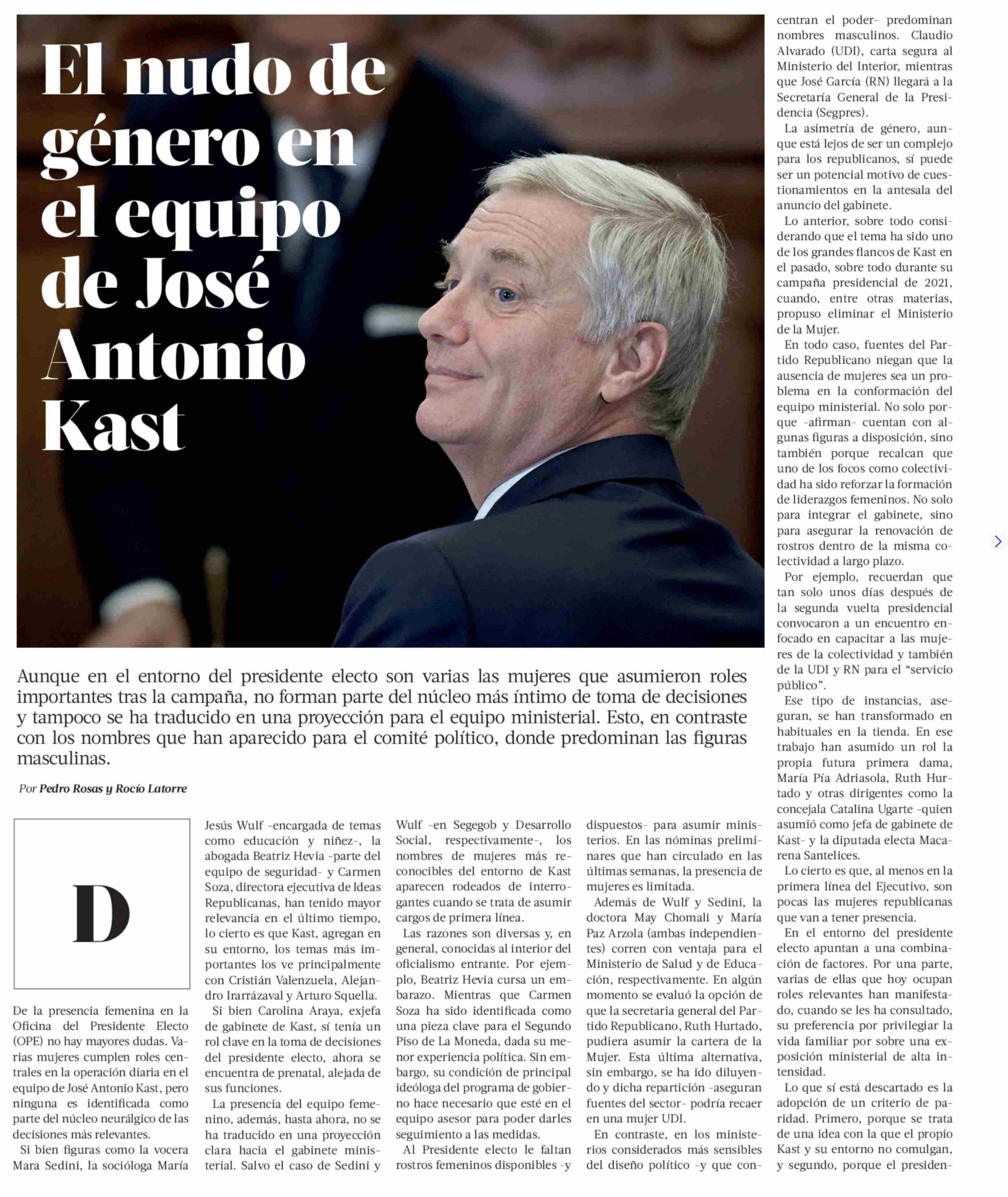 El nudo de género en el equipo de José Antonio Kast