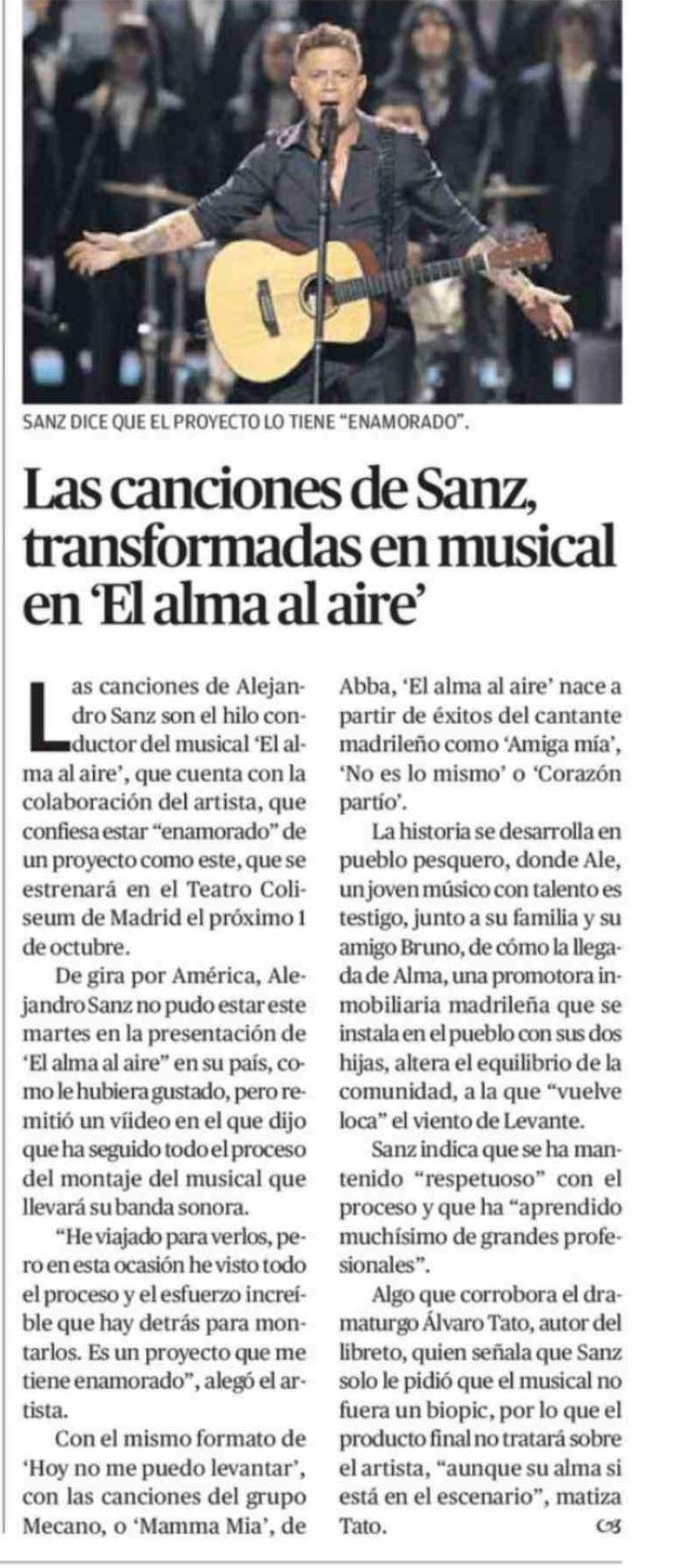 Las canciones de Sanz, transformadas en musical en El alma al aire”
