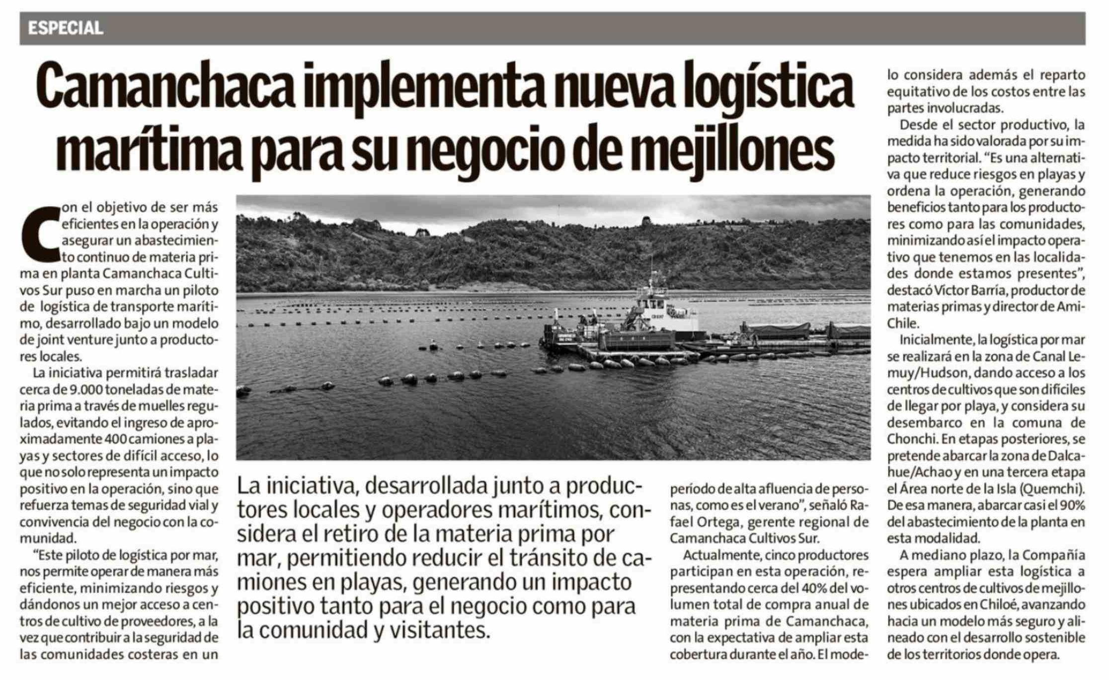 Camanchaca implementa nueva logística marítima para su negocio de mejillones