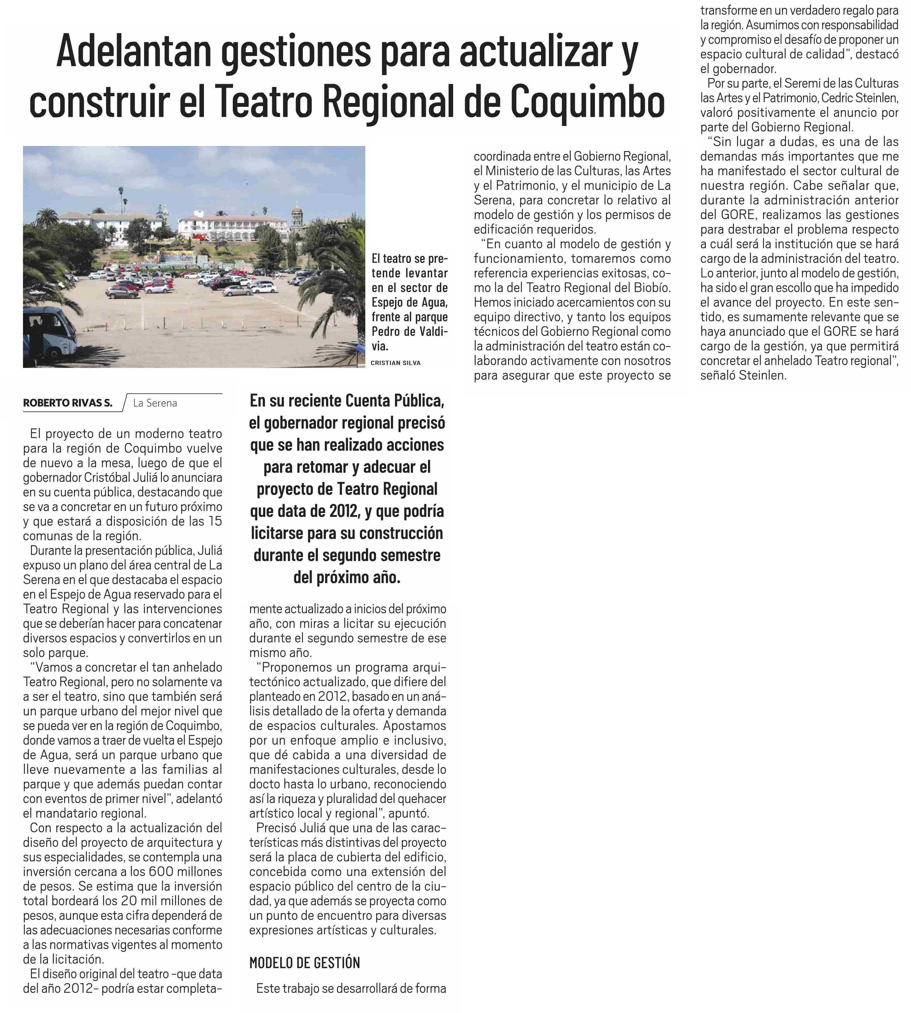 Adelantan gestiones para actualizar y construir el Teatro Regional de Coquimbo