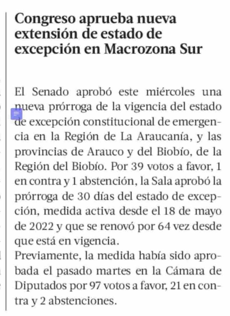 Congreso aprueba nueva extensión de estado de excepción en Macrozona Sur